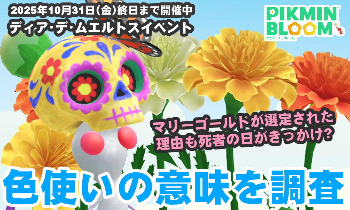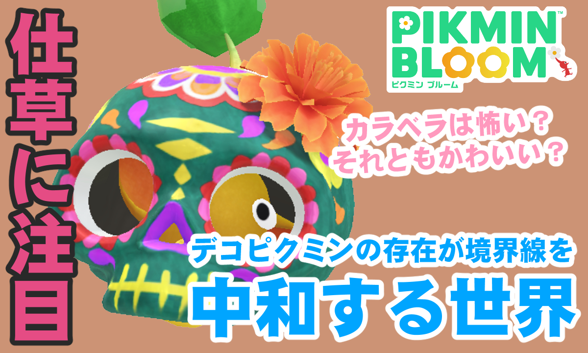 カラベラを身に付けたデコピクミンたちの仕草はもちろん、色使いの意味やマリーゴールドが選定された理由と合わせて10月はメキシコの文化を知る貴重なシーズンだと思ってたのしんでもらいたい。