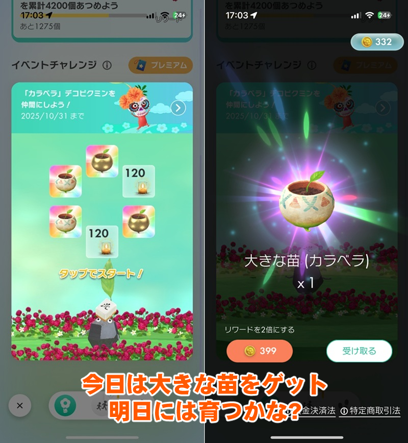 2025年10月1日(水)より位置情報ゲーム『ピクミン ブルーム』にてディア・デ・ムエルトスイベントが始まり、メキシコの伝統的な祝祭をテーマに今月は“カラベラ”を身に付けたデコピクミンが登場。