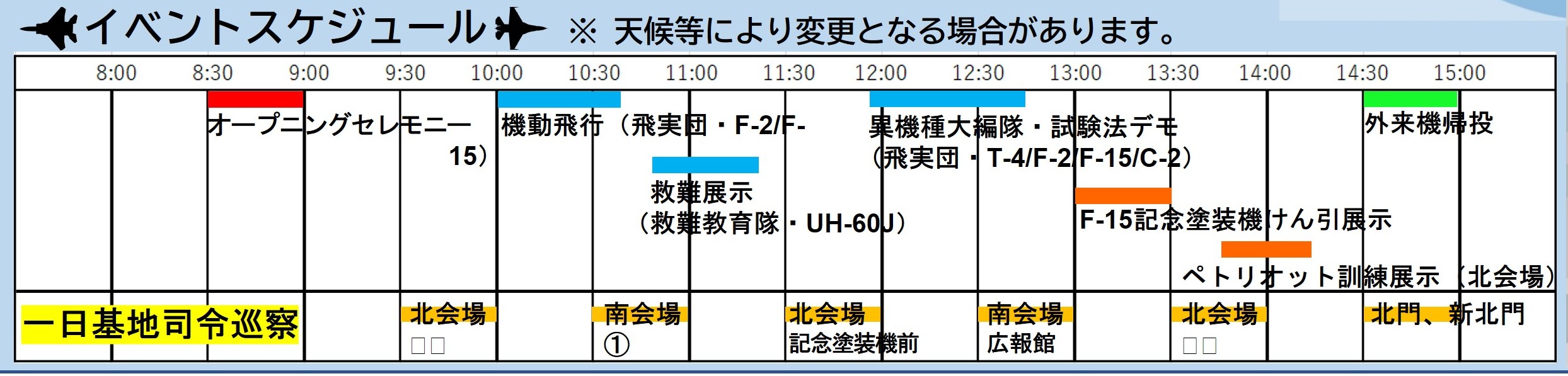 会場内で、岐阜基地の隊員が広報用の写真、動画の撮影を行う予定です。撮影した写真、動画は個人が特定されない範囲で基地HP及びX(旧Twitter)に掲載される可能性があります。その際に来場された皆様が映り込む場合がございます。あらかじめご了承ください。★その他詳細は特設ページをご覧ください。