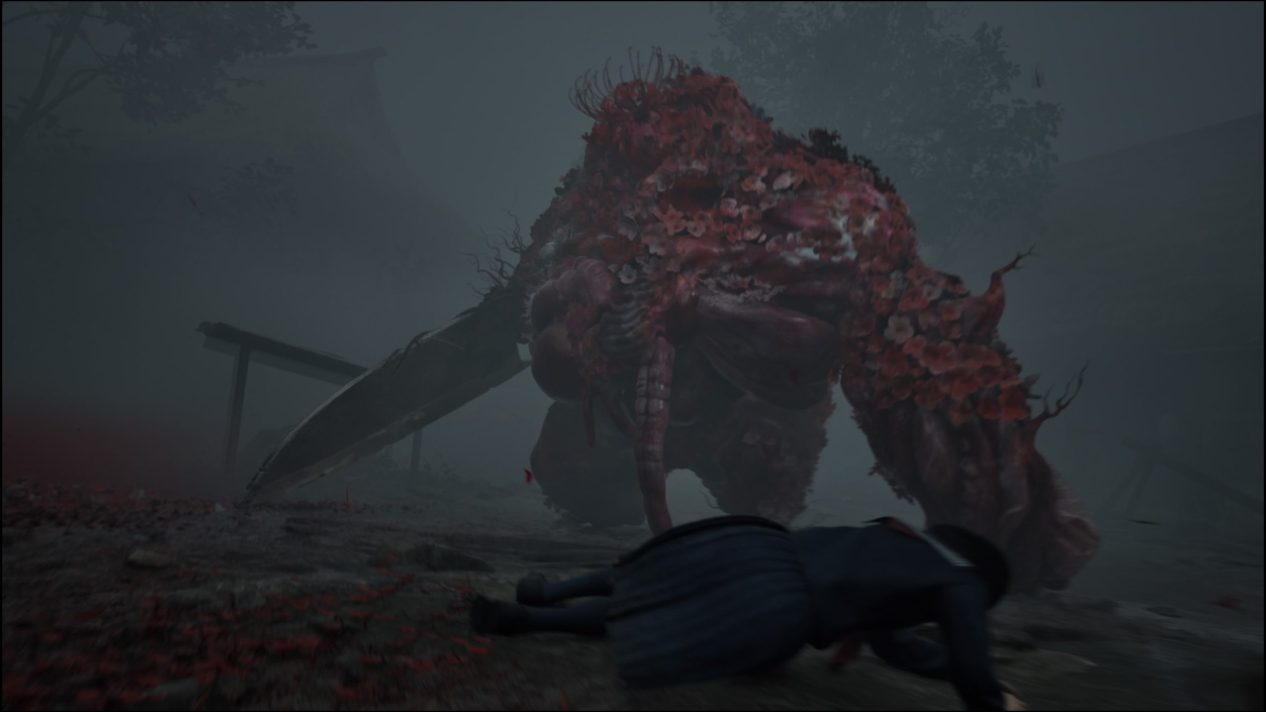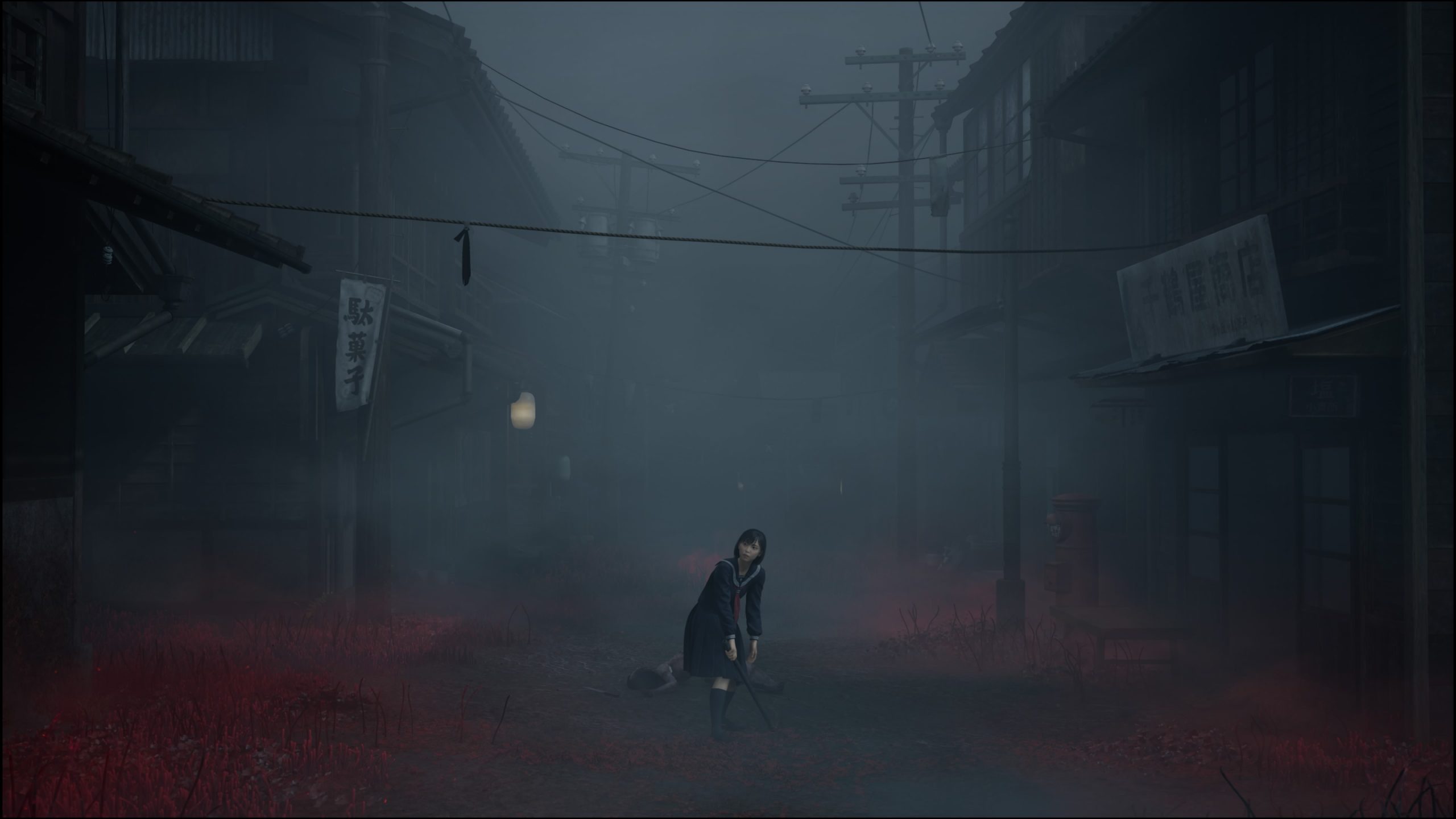 本作では、赤い花と霧に浸食された「戎ヶ丘」と、無数の鳥居が立ち並ぶ「神社的な空間」の2つの世界が舞台となる。この点は、これまでの「サイレントヒル」シリーズが持つ「2つの世界を探索する」という表面的モチーフが活かされていると言えるだろう。