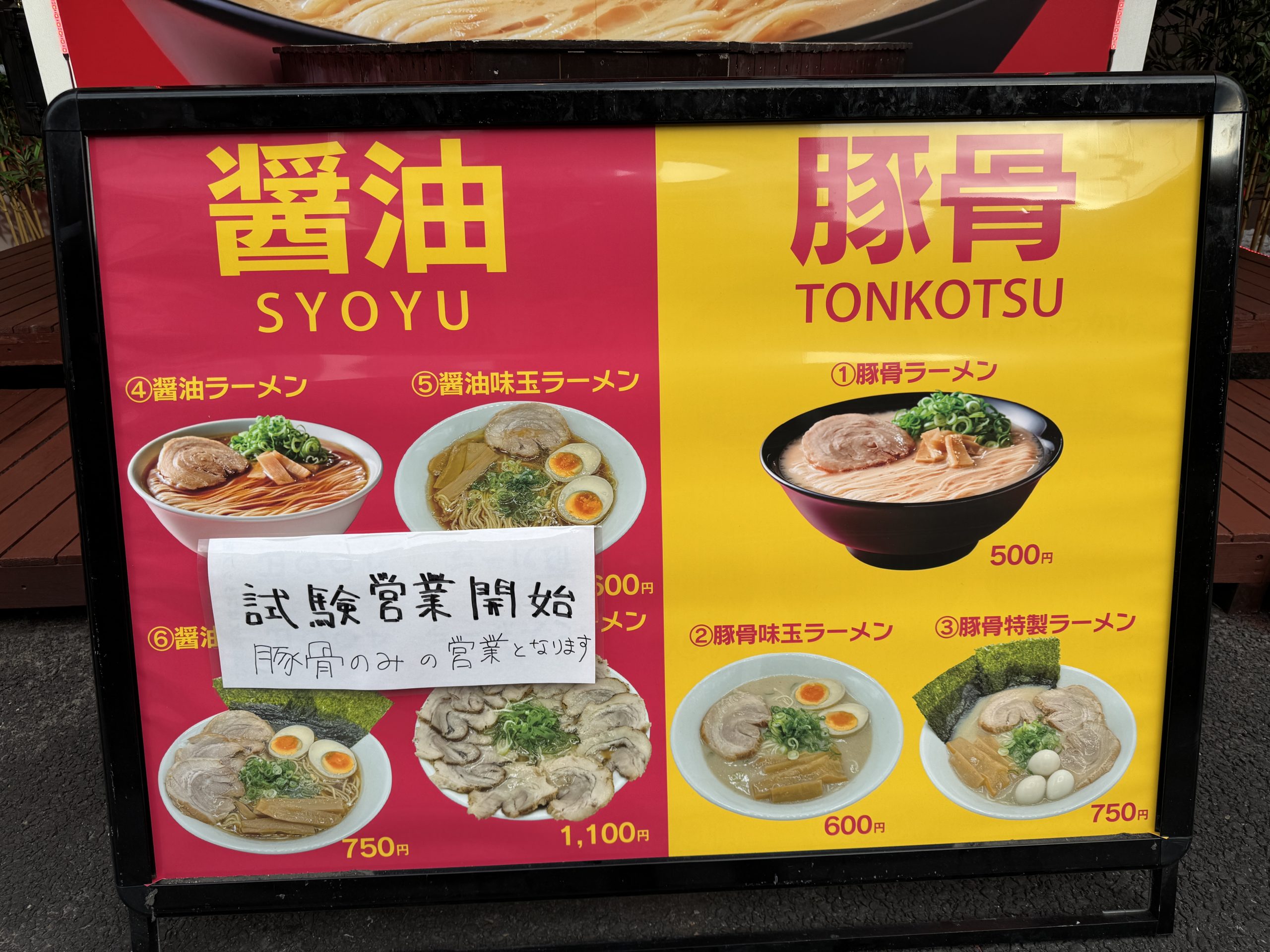 オープンしたばかりなのか、メインメニューは豚骨ラーメンだけでした。