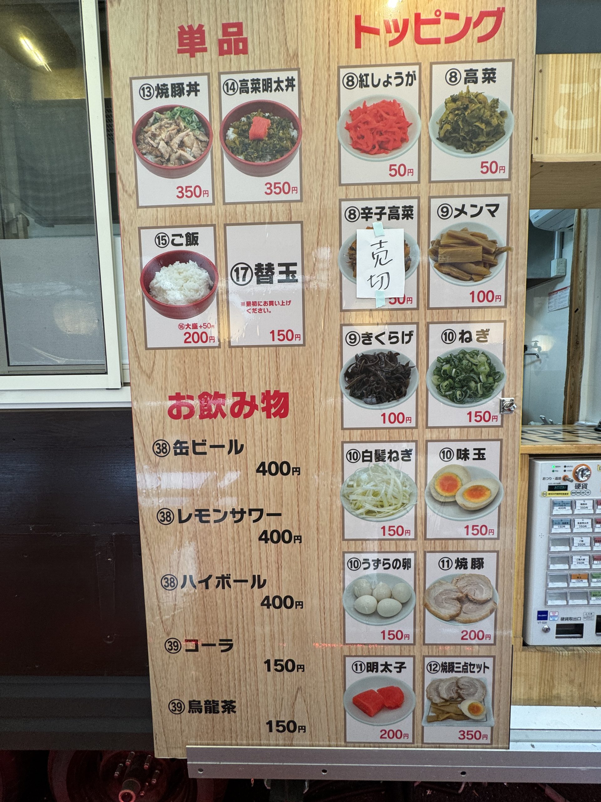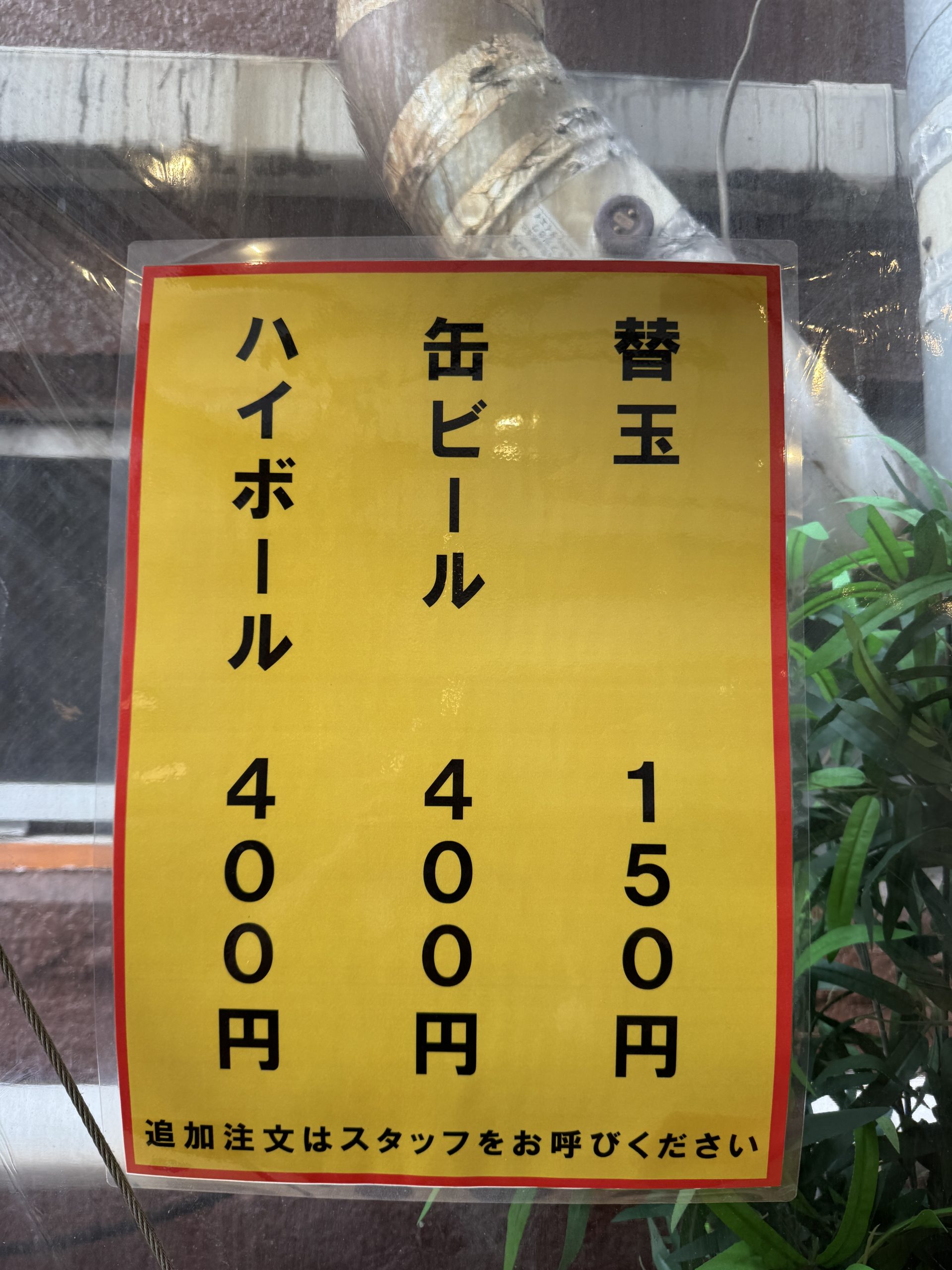 替え玉、ハイボール、缶ビールの御品書きが貼られていました。
