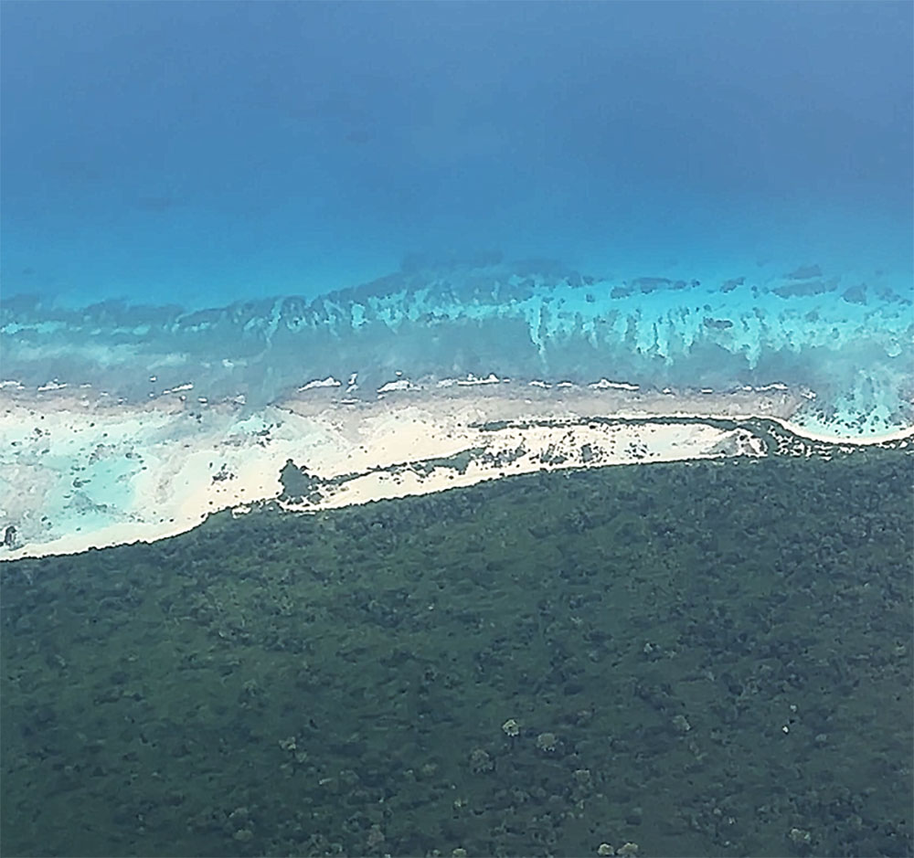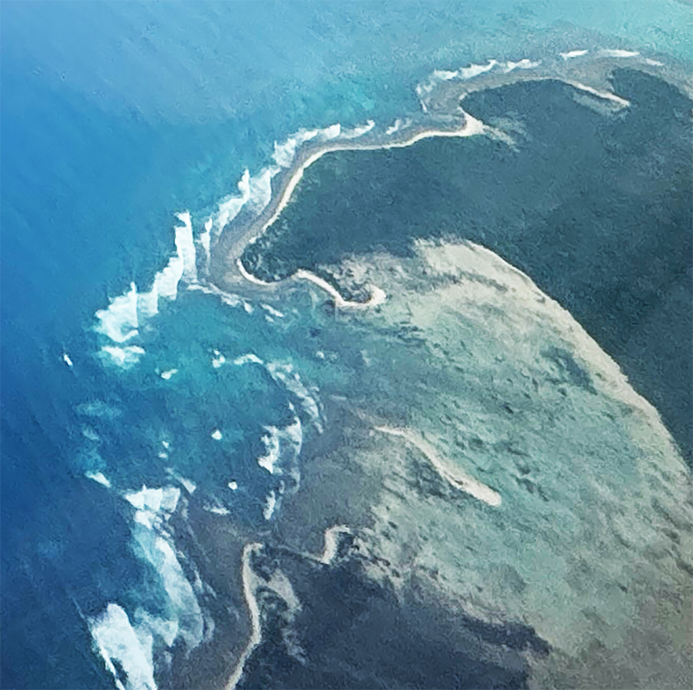 ポートブレアの空港が近くなり、飛行機が着陸のため高度を下げるあたりで、北センチネル島の上空を通過します。この日はモヤが出ていて鮮明度に欠けましたが、それでも島の沿岸部を撮影することができました。