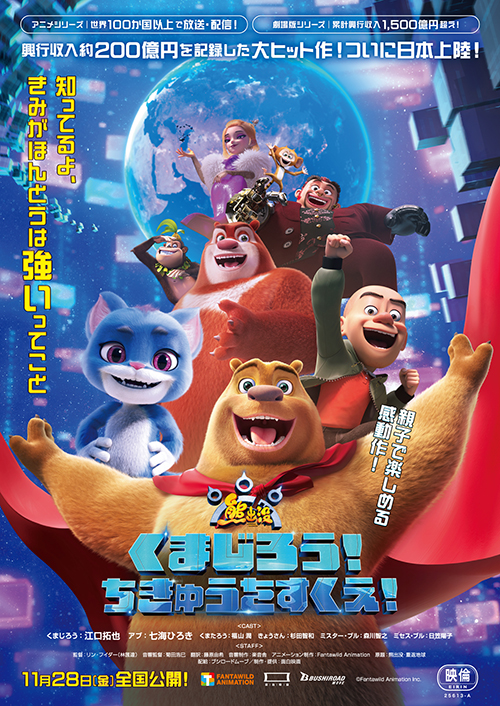 『くまじろう!ちきゅうをすくえ! ~熊出没~』は、くまの兄弟と仲間たちが大活躍する大人気アニメ『熊出没』シリーズの劇場版作品。原作アニメシリーズは100以上の国と地域で放送・配信され、劇場版はシリーズ累計興行収入が約1500億円を超える世界的大ヒットコンテンツだ。本作も興行収入約200億円を記録しており、待望の日本語吹替版での上陸となる。