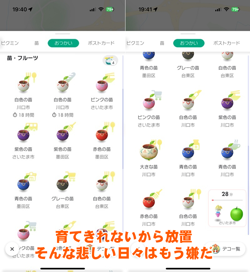 常設のスポット系に関しては、遊んでいればいずれコンプリートできるだろうというマイペースなプレイスタイルなので、苗の育成率はそんなに多いほうじゃない。