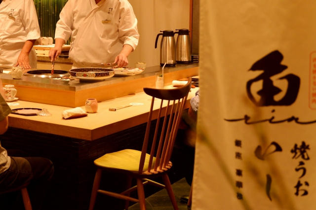 その理由は同店ならではの新奇性にあるのですが、今秋オープンした銀座店のレポートで特徴を解説していきましょう。正式名称は『焼うお いし川 銀座凛華楼』。三越銀座の新館12階に、9月25日開業しました。