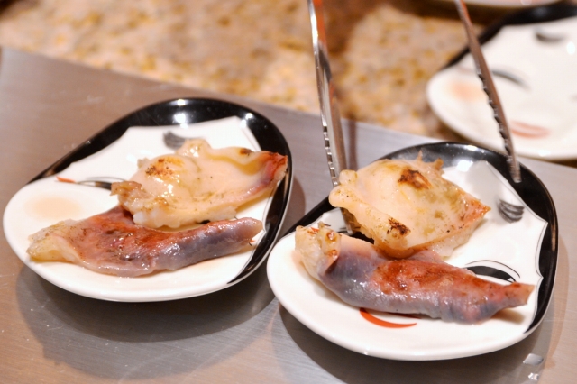 ほかにも『下関産天然トラフグ』は、牛タンを彷彿(ほうふつ)とさせるようなうまみと食感。1枚ずつ炙るたびにロースターの上をなぞる、太白胡麻油も芳醇な香りの秘密とのことですが、改めてマッチングの妙に驚かされます。