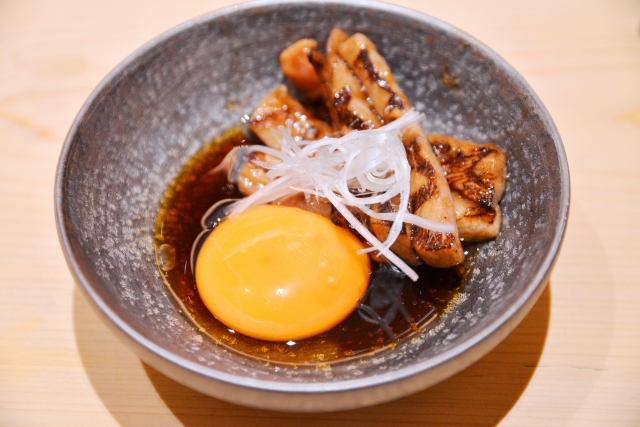 その後も、皮パリで仕上げてくれる『銚子産カマス』に『東北産アナゴ』、『日本海産ノドグロ』と続き、盛り合わせのラストは本マグロの中トロ、大トロでフィニッシュ。片方のトロは、すき焼きスタイルで食せるのも嬉しいポイントです。