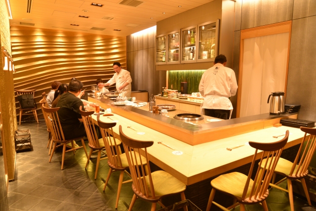 個室も備えた和モダンな空間は、全席がオープンスタイルのカウンター。目の前で焼師が仕上げるライブ感や、コミュニケーションを交えながらもてなすサービスも、特別感を演出します。