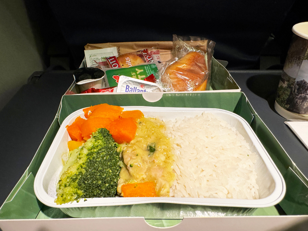 ナウル航空の飛行機はかなり快適。客室乗務員さんも親切。なにより機内食が野菜が豊富で、ソースも美味で、大満足のデキでした。ちゃんと野菜摂っててエライ!