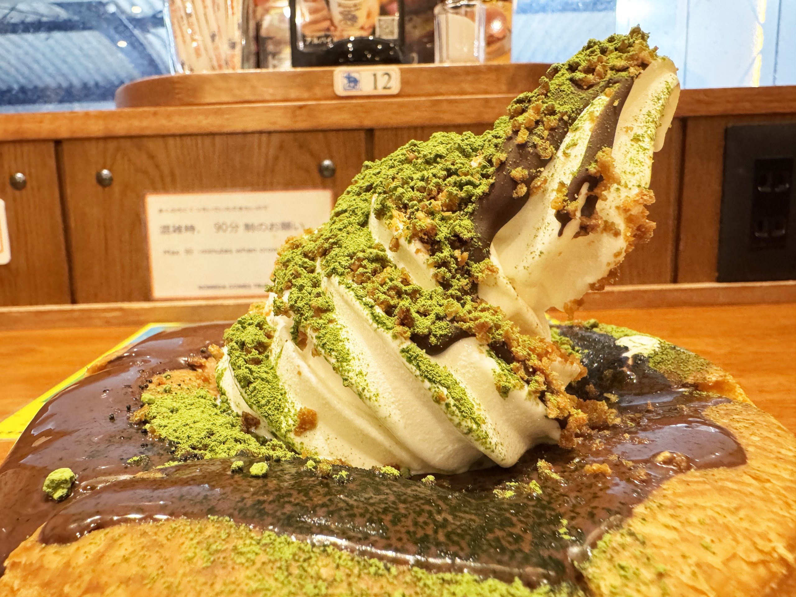 特に注目したいのが、チョコレートの存在。これ凄まじいよ。チョコレートがソフトクリームから生地にかけてたっぷりとかかっているんだけど、ソフトクリームの冷たさによってチョコレートが固形化していて、生地の部分はトロトロでなめらか。