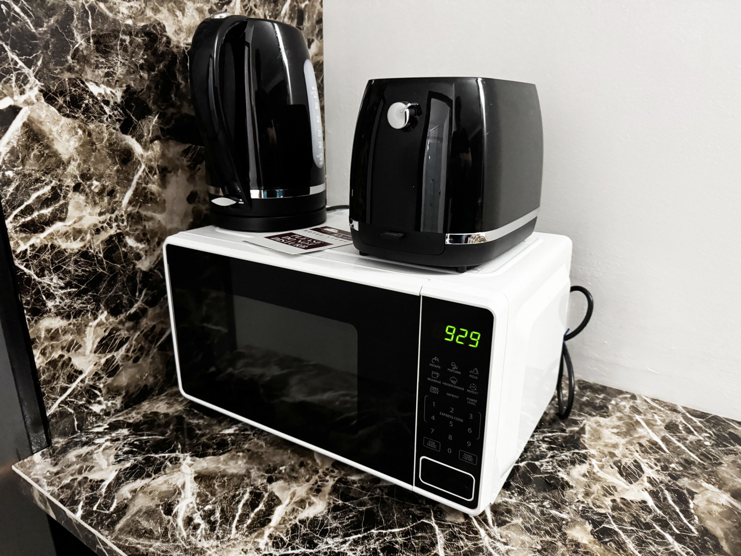 室内はけっこう居心地が良い雰囲気。カウンターテーブルがあり、そこにはテレビ、電子レンジ、トースター、ポットがありました。テレビは壊れているのか、私の操作が悪いのか、つきませんでした。