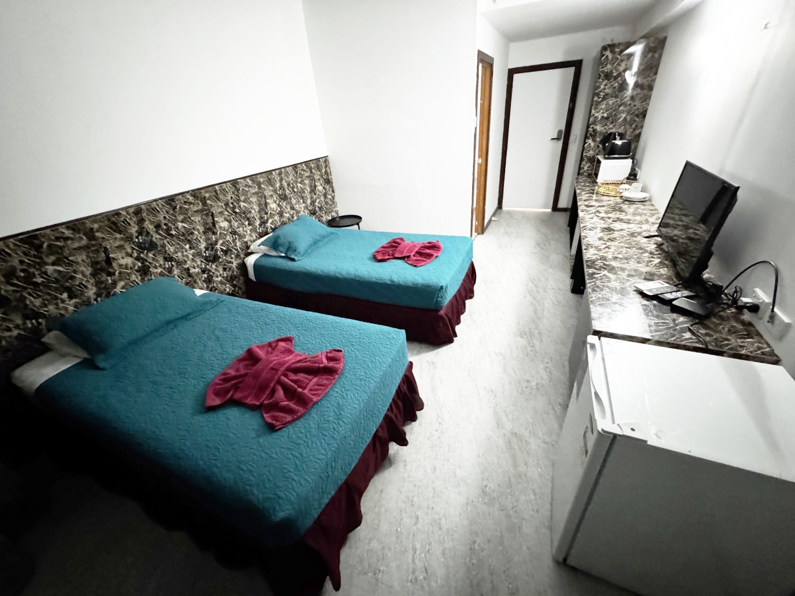 私の一人旅ですが、ベッドはツインでした。ベッドマットはやや硬めで、それがむしろ安定して眠ることができて嬉しかったです。フカフカのベッドもいいけど、こういう硬めのも良いです。