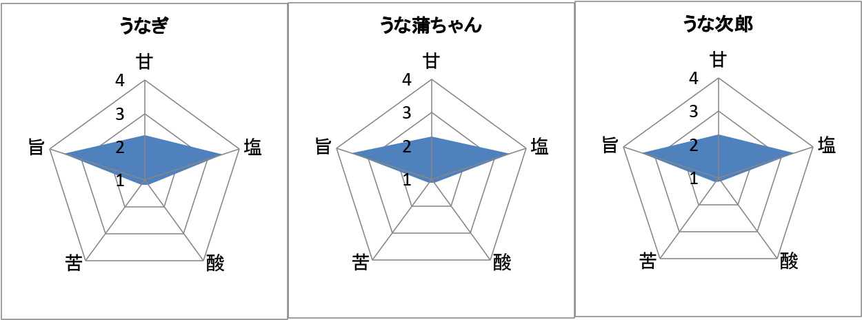 コクとは総合的な味の強さを示す数値。この数値が抜けているということは、やはりうなぎ風かまぼこよりも本物のうなぎのほうが味が強く、美味しさを感じやすいということになります。