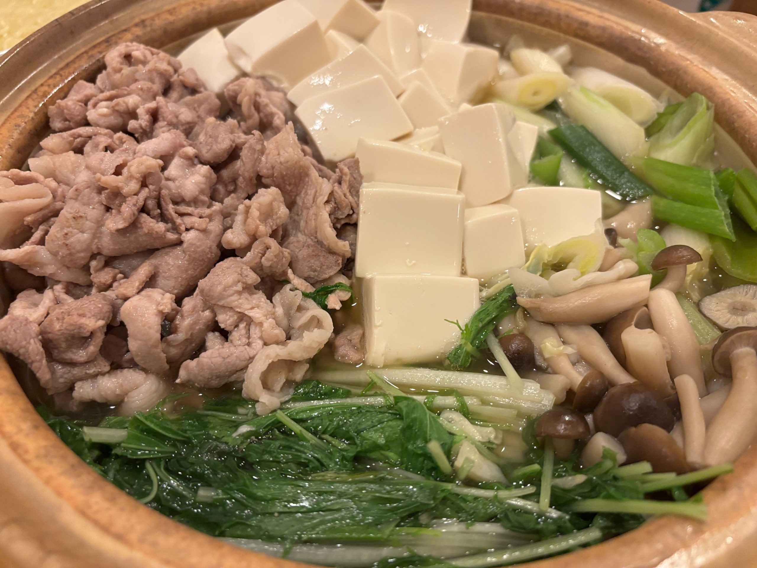 ポイントは、まず豚肉をフライパンで中火で炒めて焼き色をつけておくこと。一度焼いてから鍋で煮込むことで、香ばしくコク深い鍋に仕上がる。