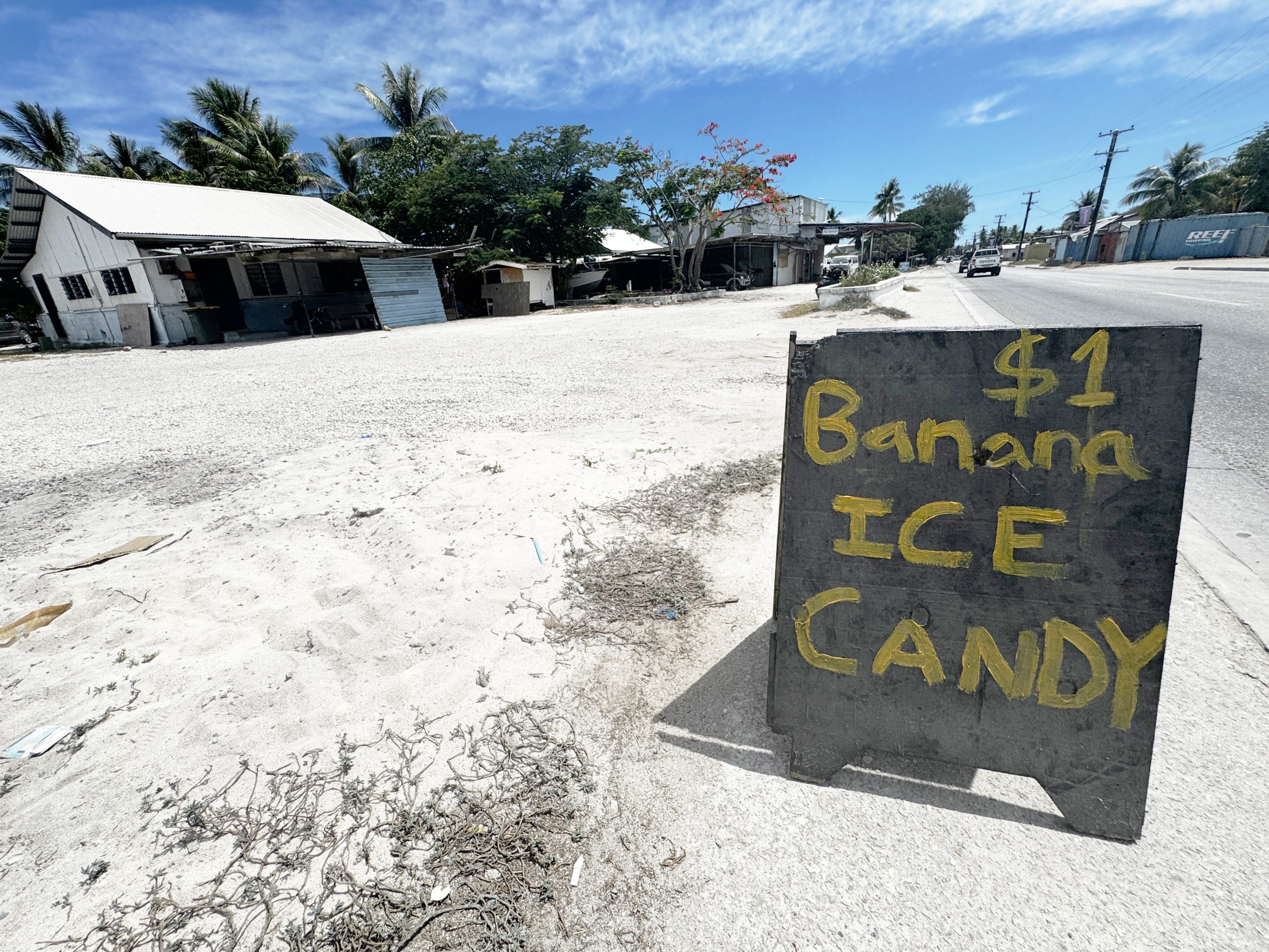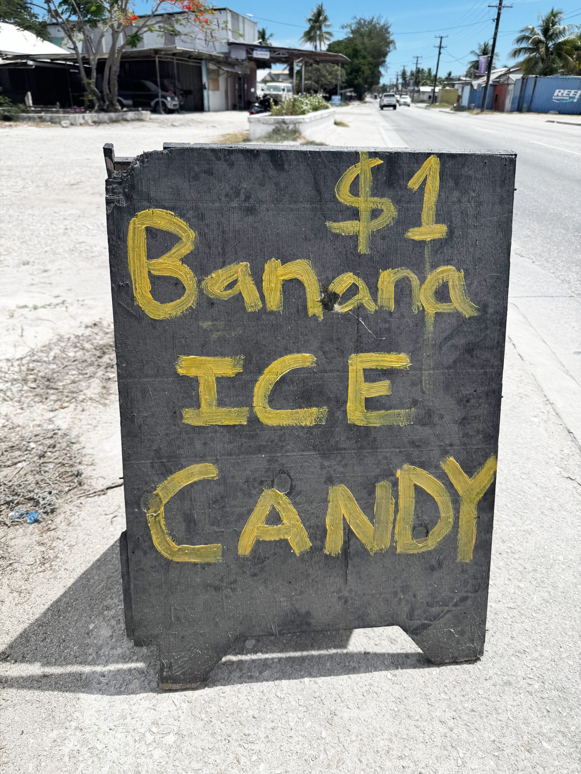 ナウル島を歩いているとわかると思うのですが、いたるところに「バナナアイスキャンディー」と書かれた看板が置かれています。その看板がある場所には、バナナアイスを売っている店や家があるという意味です。