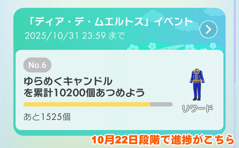 現在、トータル8675個なので最後のMiiコスチュームまでに必要な“ゆらめくキャンドル”の数は3325個。