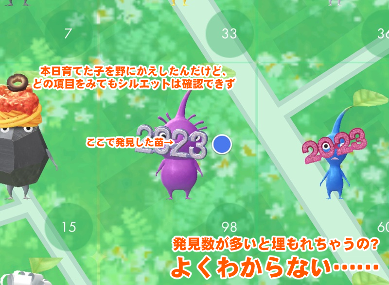 公式アナウンスによれば、苗を拾った場所(マップ)にシルエットが残るらしい。