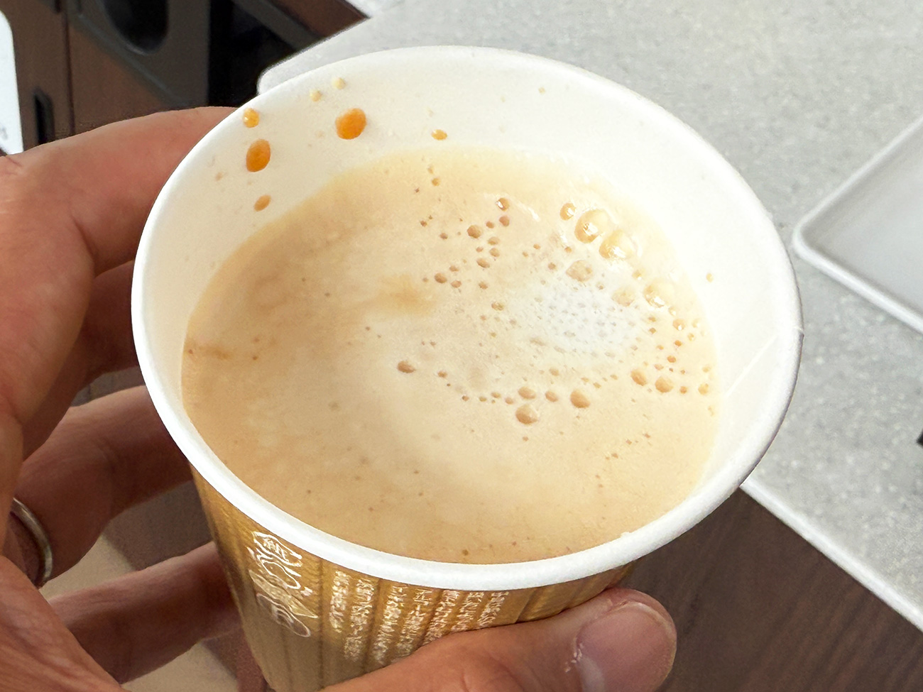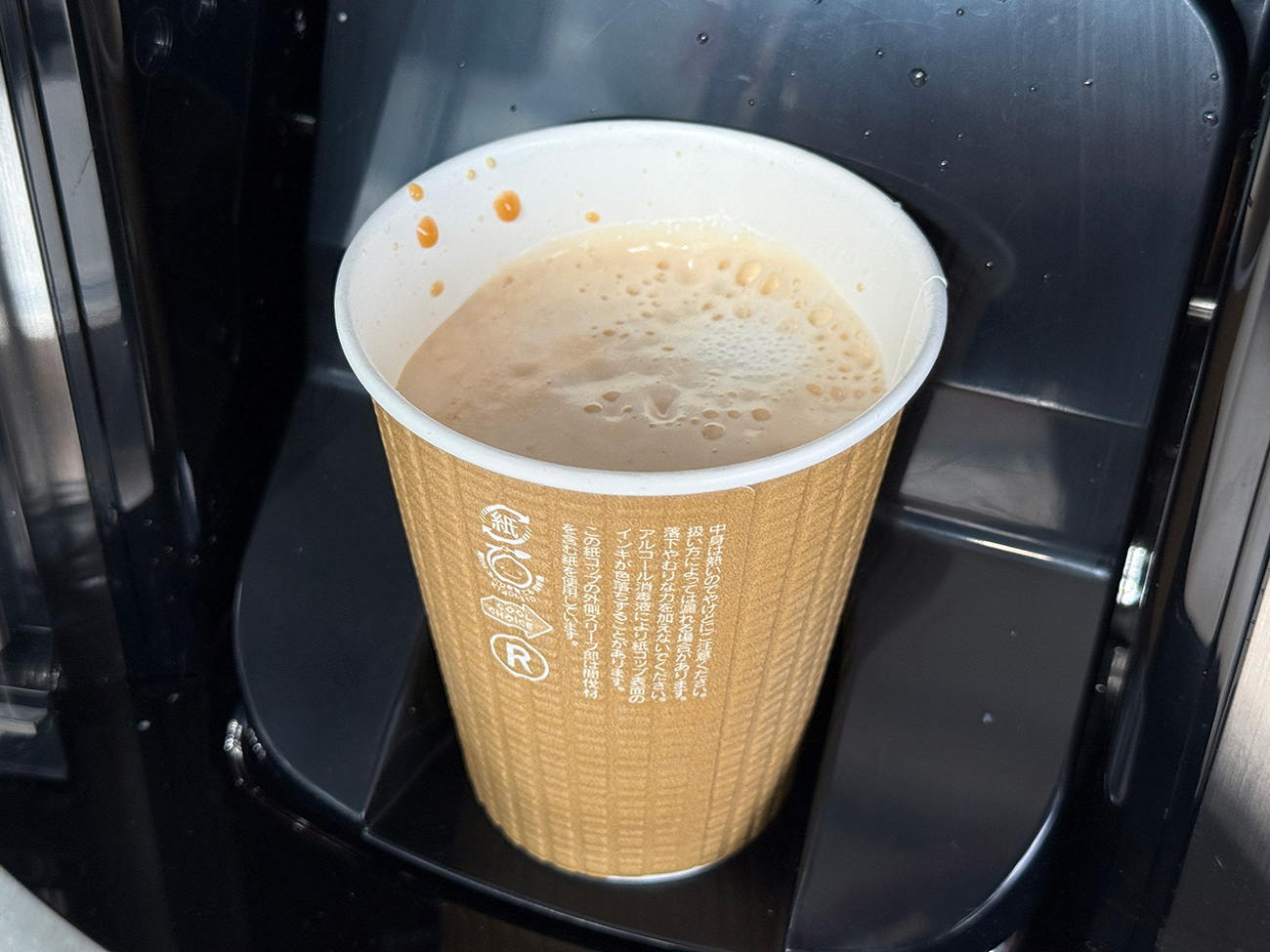 続いて、ホットミルクティーも飲んでみました。ミルクティーだと選べる茶葉はアールグレイとアッサムブレンドだけとなり、ダージリンブレンドは選べないようですね。アールグレイで飲んでみます。