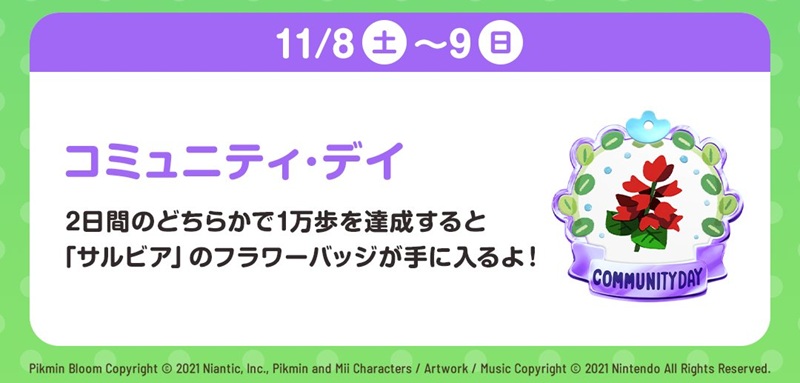 歩数や花植え、キノコを壊した数やサルビアのフラワーバッジがカウント対象になっていることも納得だ。