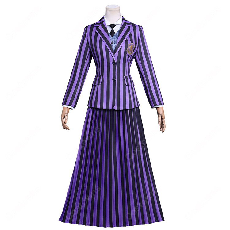 ウェンズデーの親友であるイーニッドの明るく元気な個性を表現。刺繍が施された制服は上品さと華やかさを兼ね備え、イベントや撮影にもぴったり。