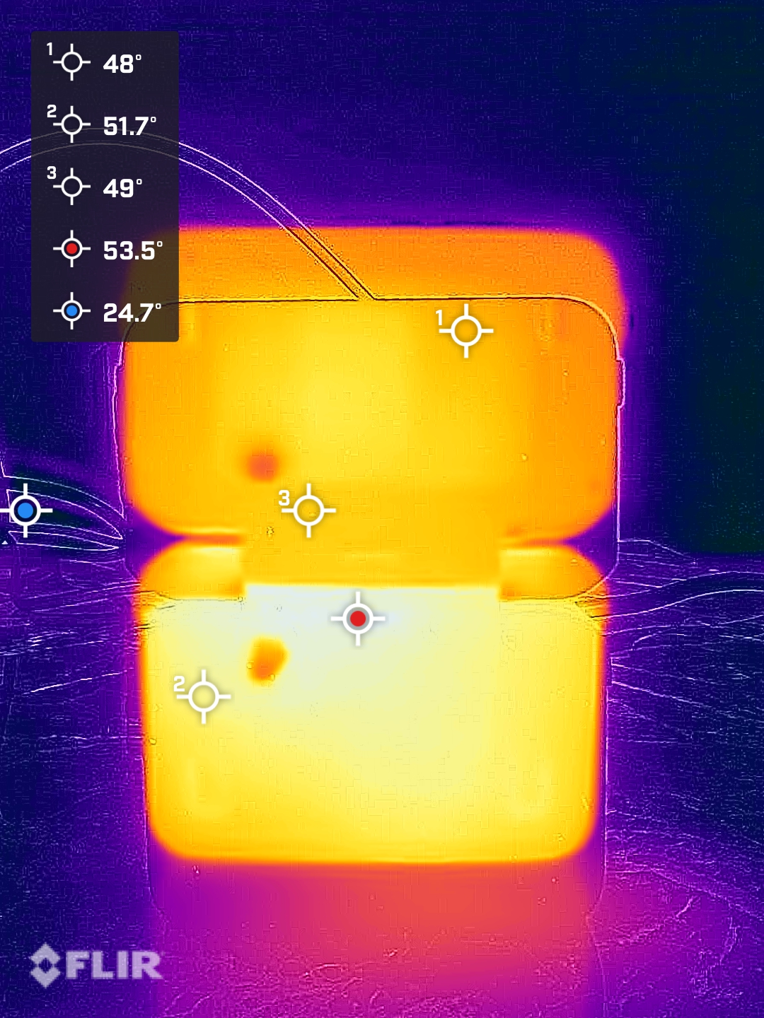 アクションカメラは小型ながらも高画質な動画を撮影するため、熱を持ちがちですが、8K撮影をした直後のInsta360 Ace Pro 2はどれくらい熱くなるのでしょうか。今回、サーモカメラで8K撮影後のInsta360 Ace Pro 2を撮影し、温度を調べてみました。