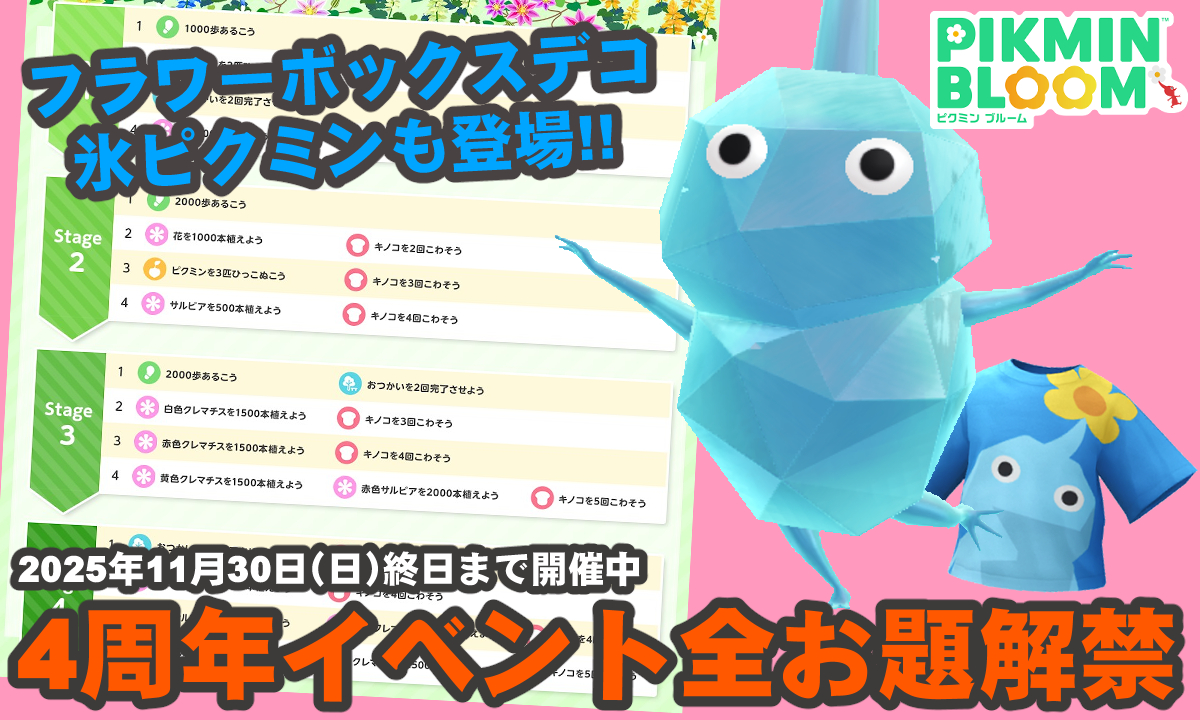 2025年11月1日(土)、位置情報ゲーム『ピクミン ブルーム』4周年を記念したフラワーボックスイベントがついに開幕。
