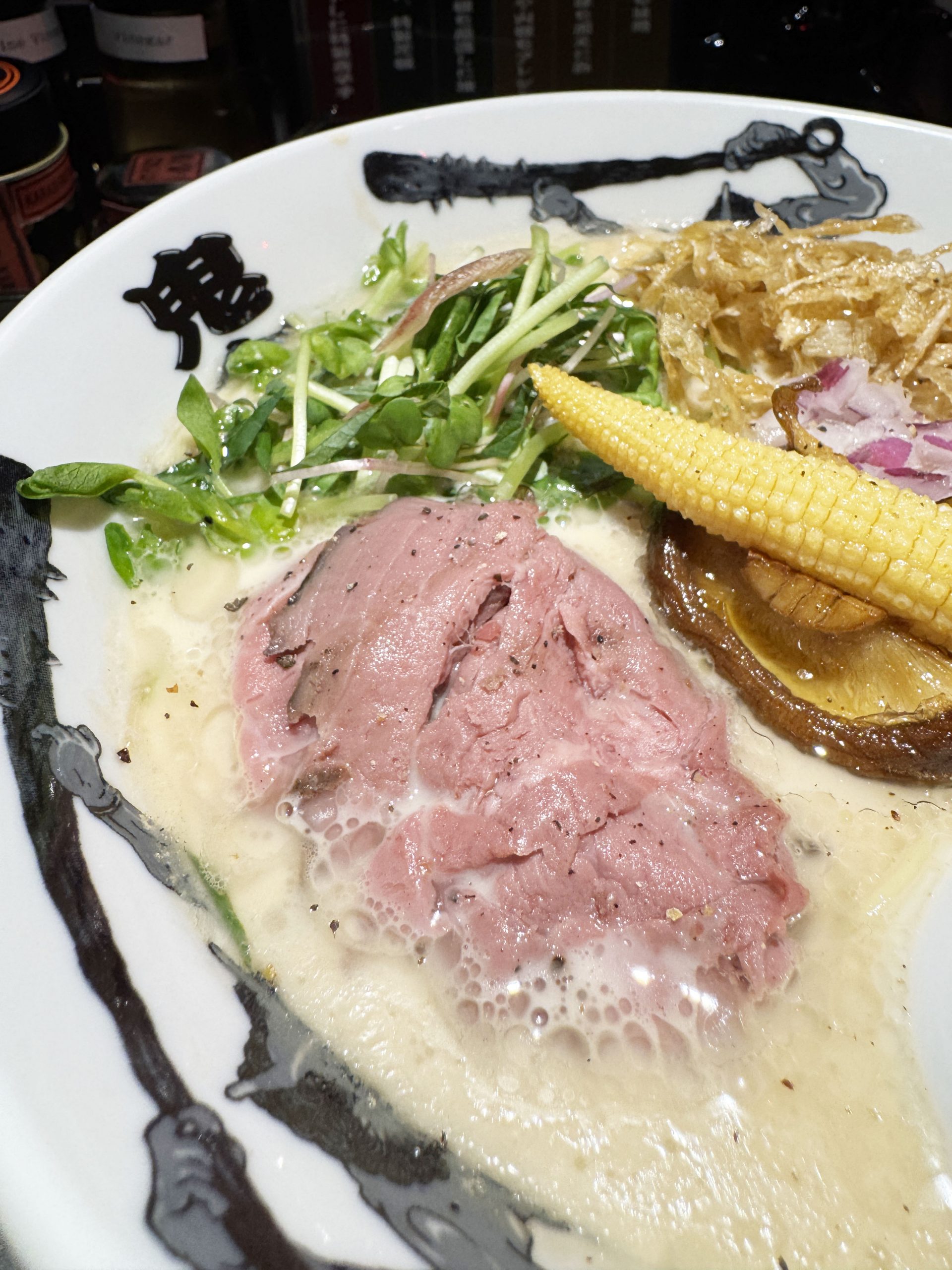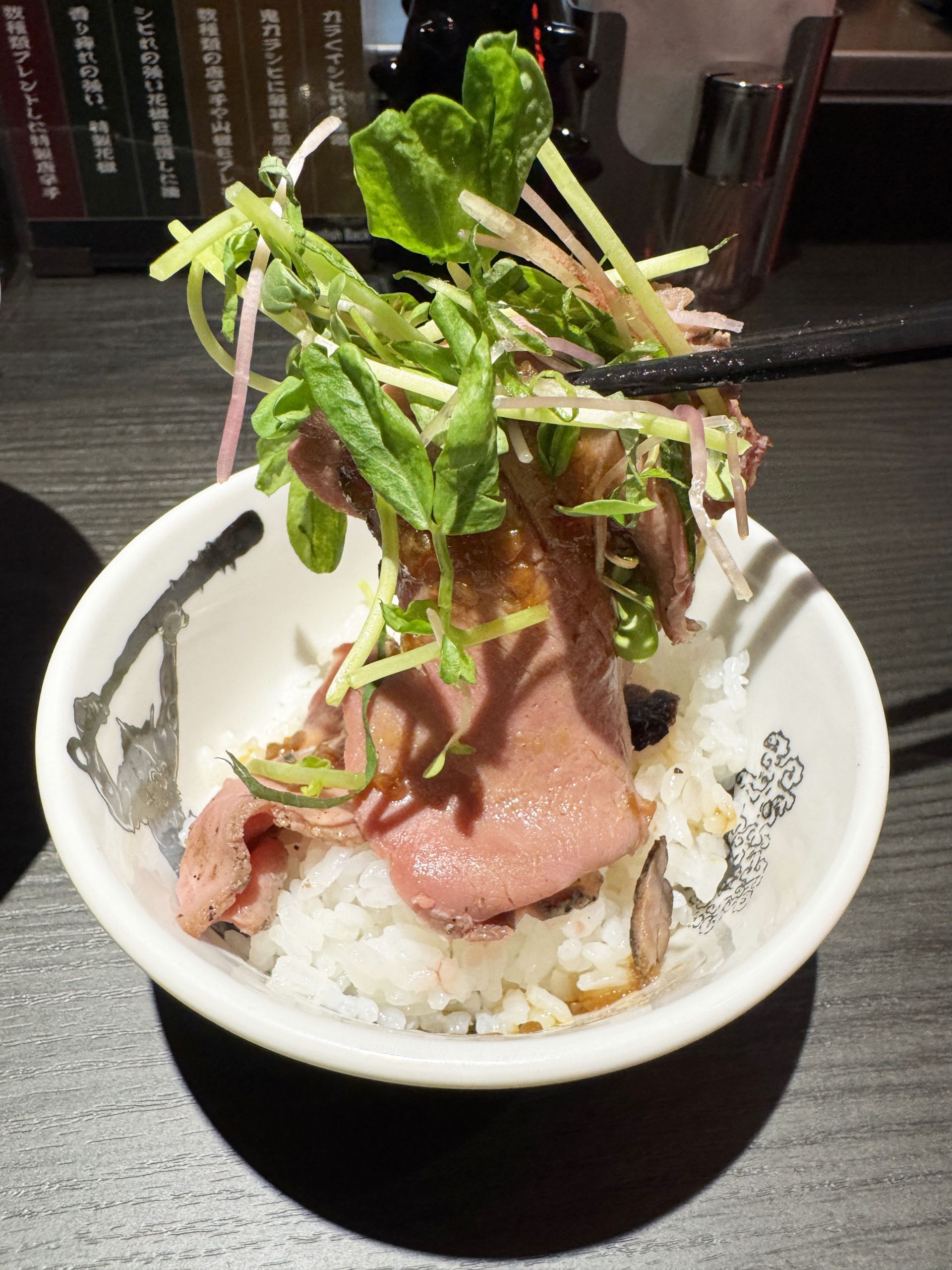 ということで、実際に食べてみることにしました。今回オーダーした料理は、牛骨らー麺(1380円)と肉飯(480円)。本当は特製牛骨らー麺を食べたかったのですが、まずはベースとなるラーメンを体験することにしました。