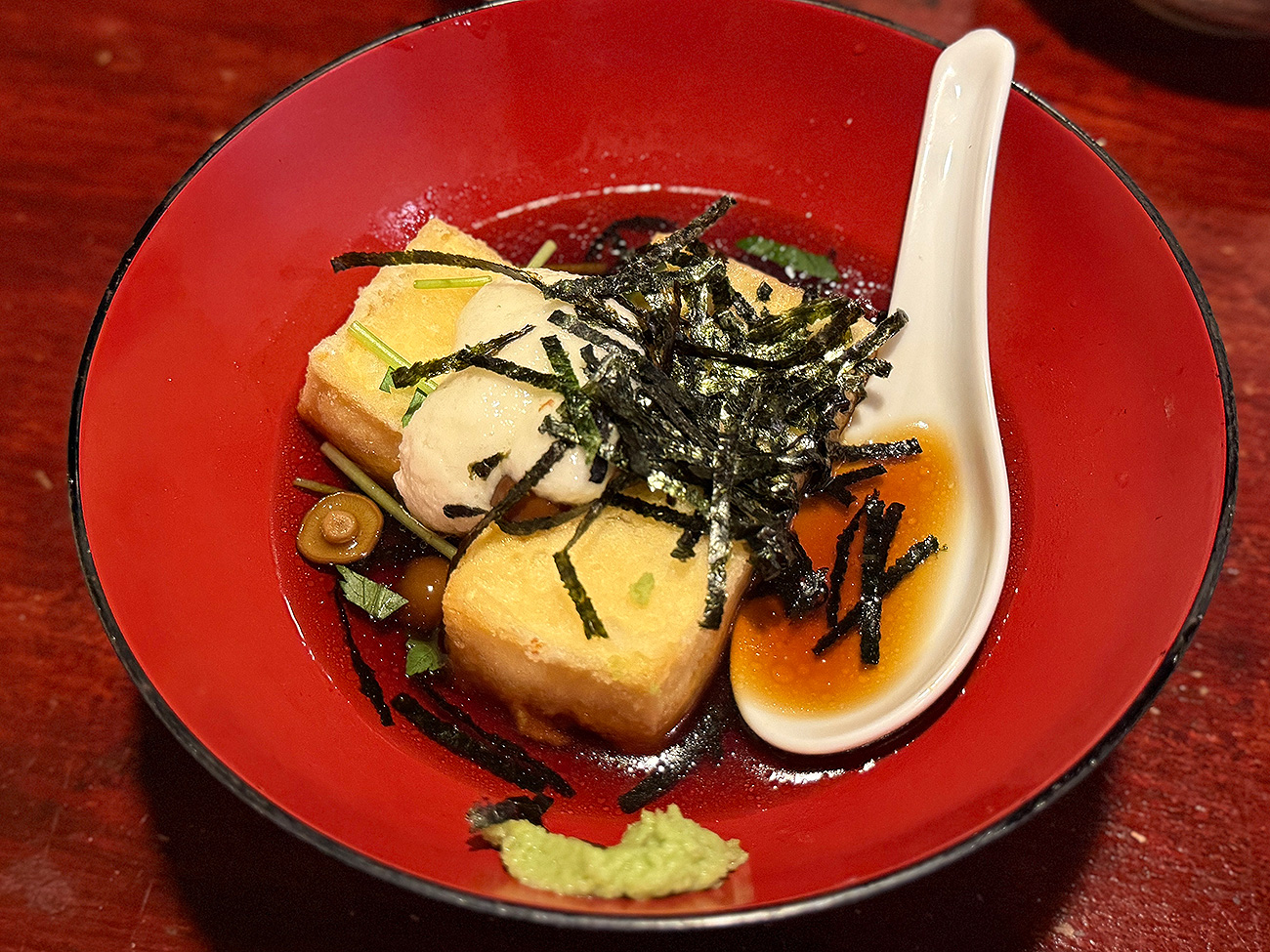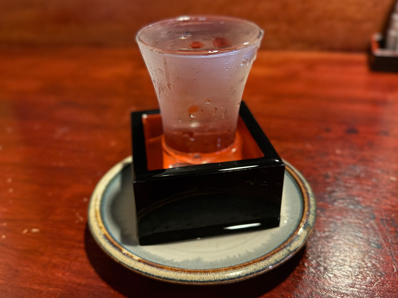 こうなるとパートナーをビールから日本酒に変更不可避。季節のおすすめ地酒として八海山のしぼりたて原酒があったのでそちらを注文しました。注ぎっぷりも大盤振る舞いで嬉しい限り。