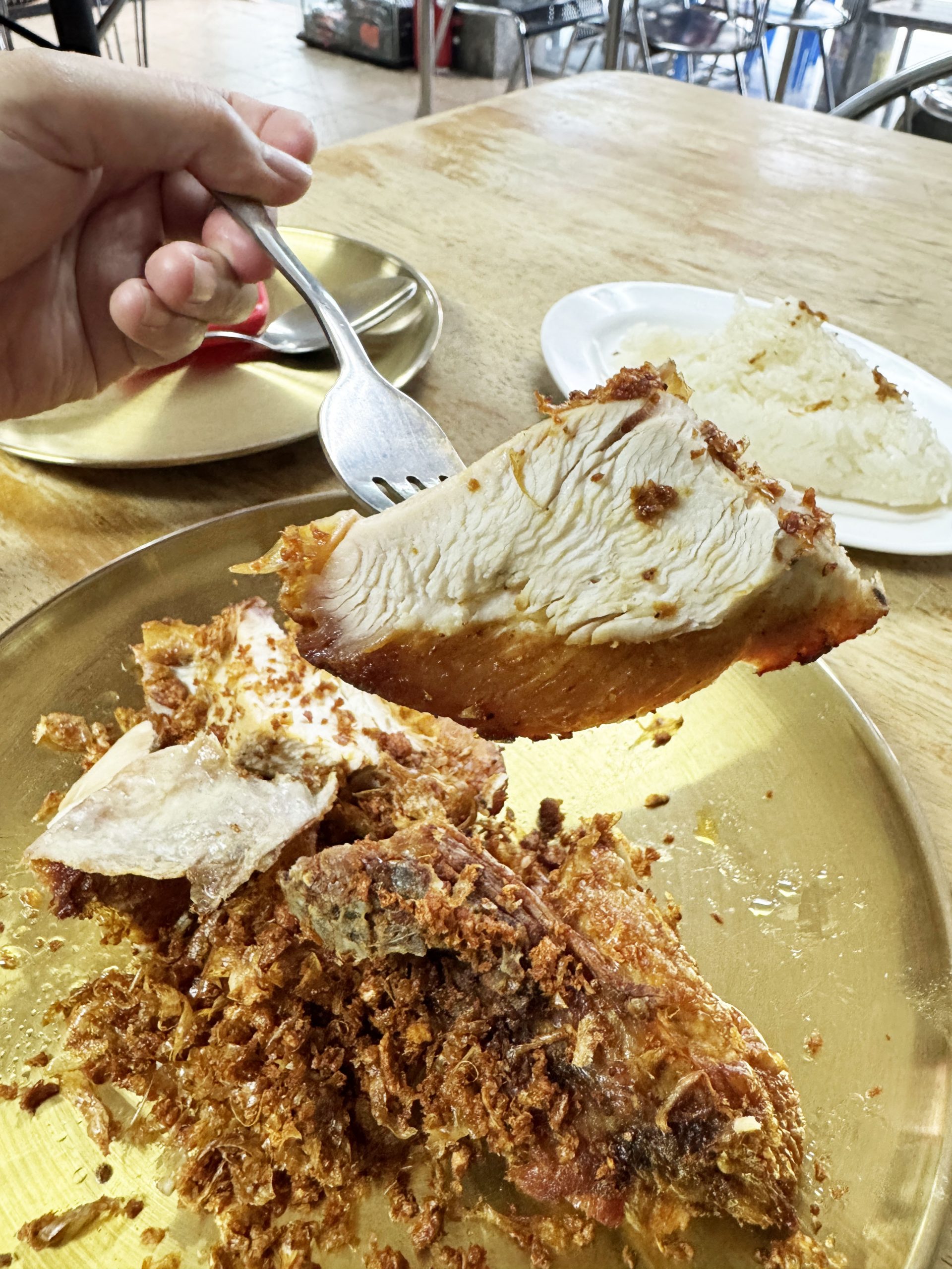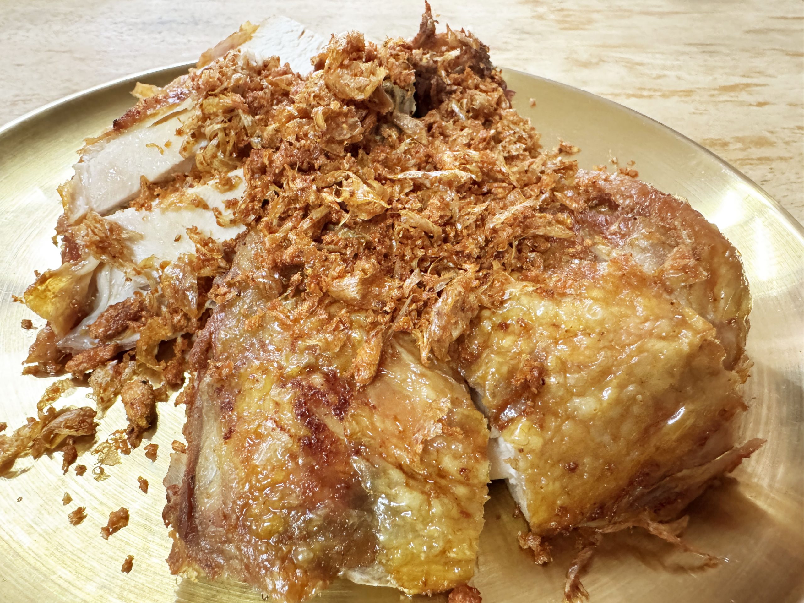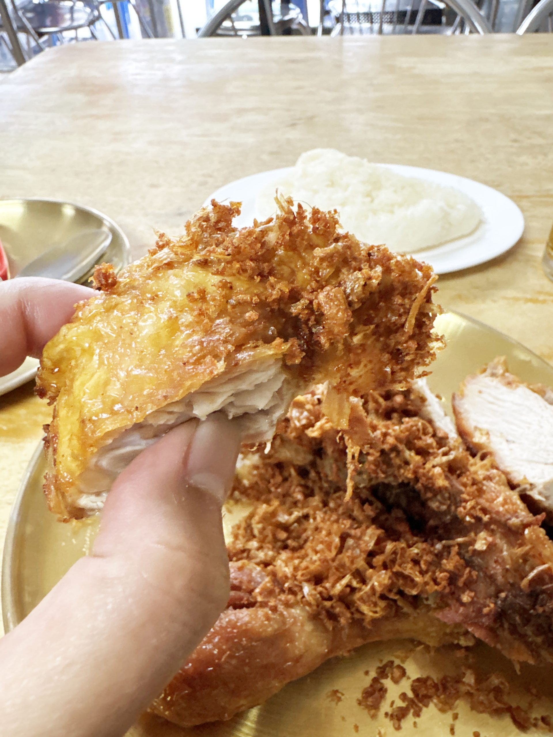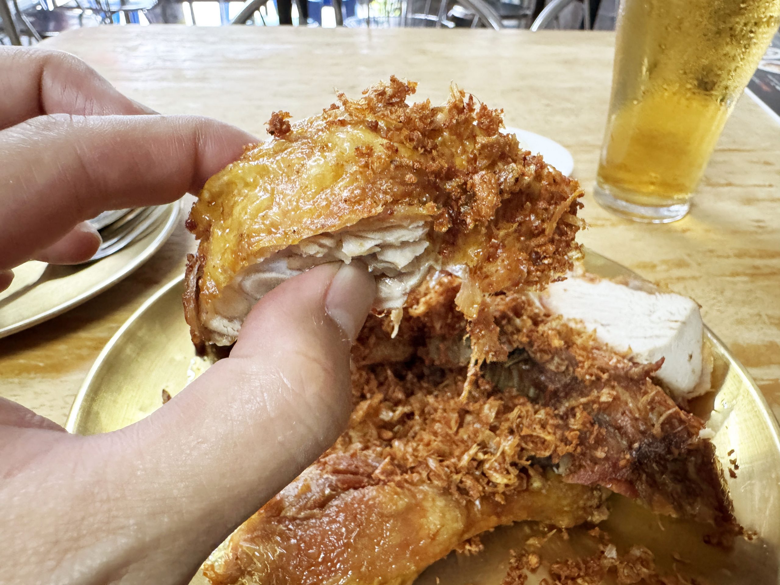 名物料理のフライドチキンはハーフサイズで140バーツ、日本円にして約660円。フルサイズは鶏がガッツリとまるごと登場で280バーツ、日本円で約1320円なので激安だ。