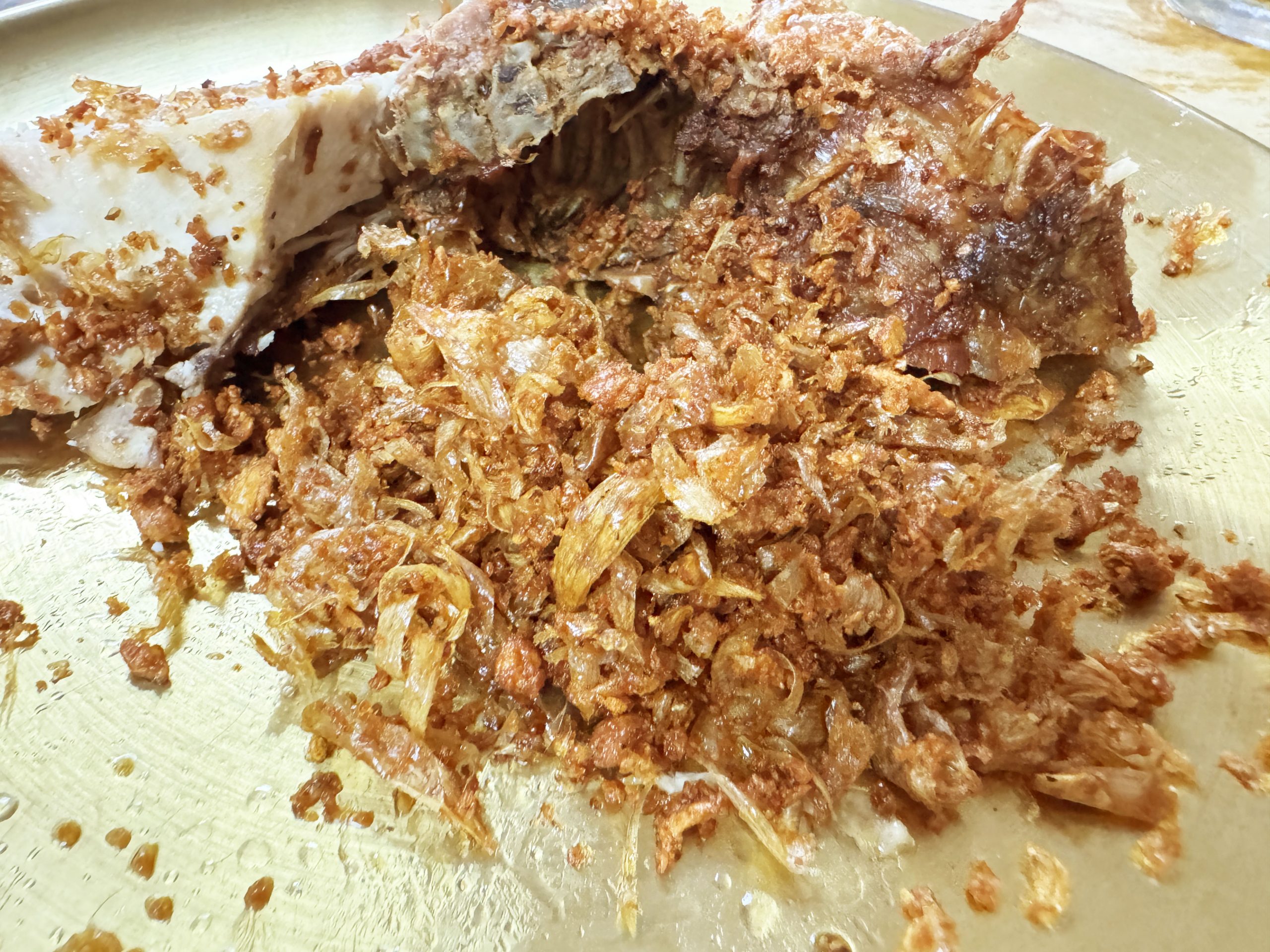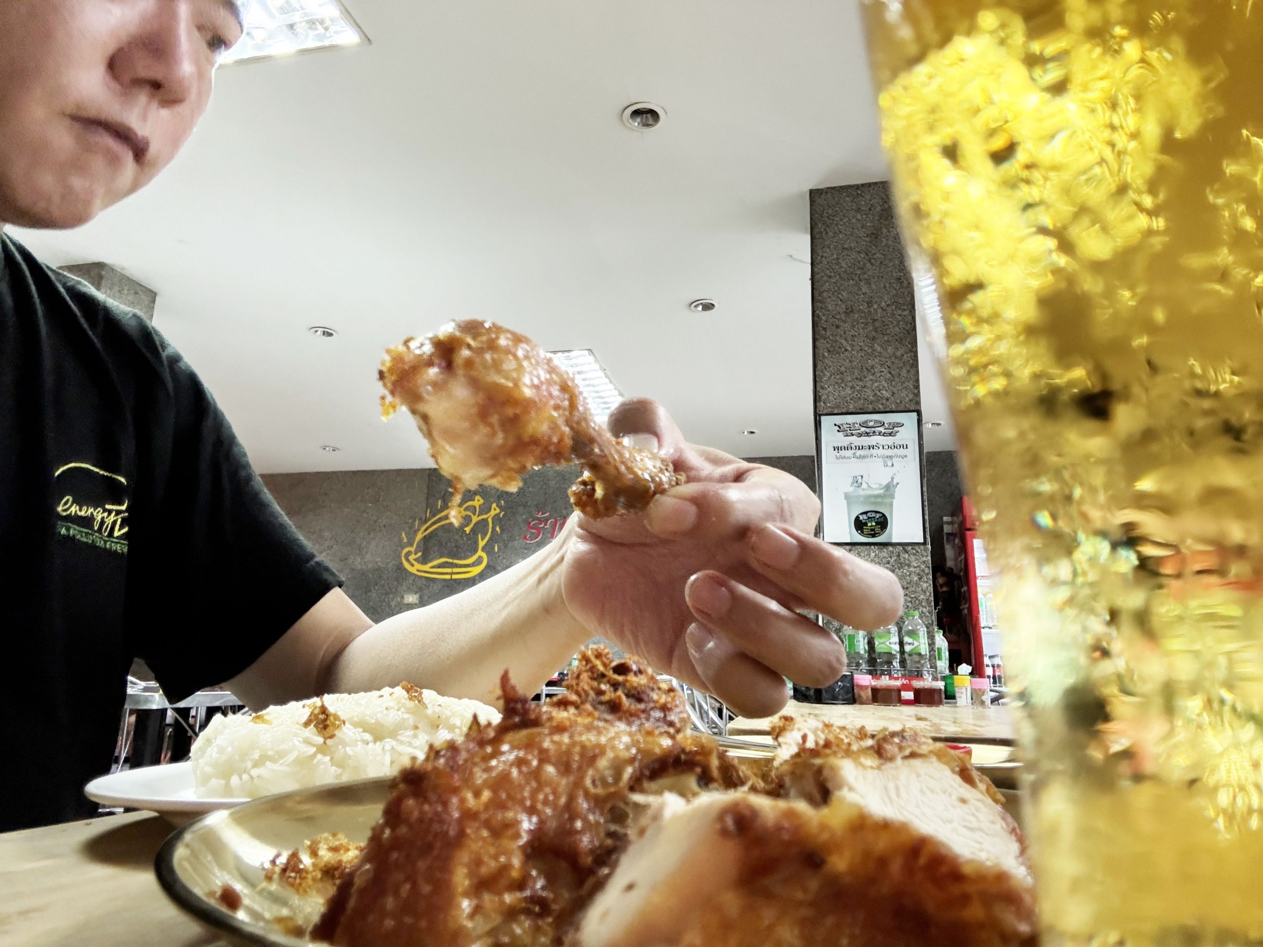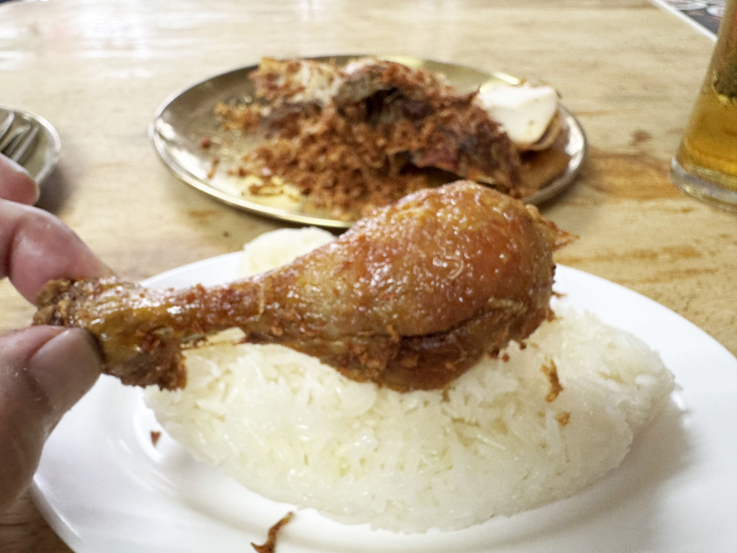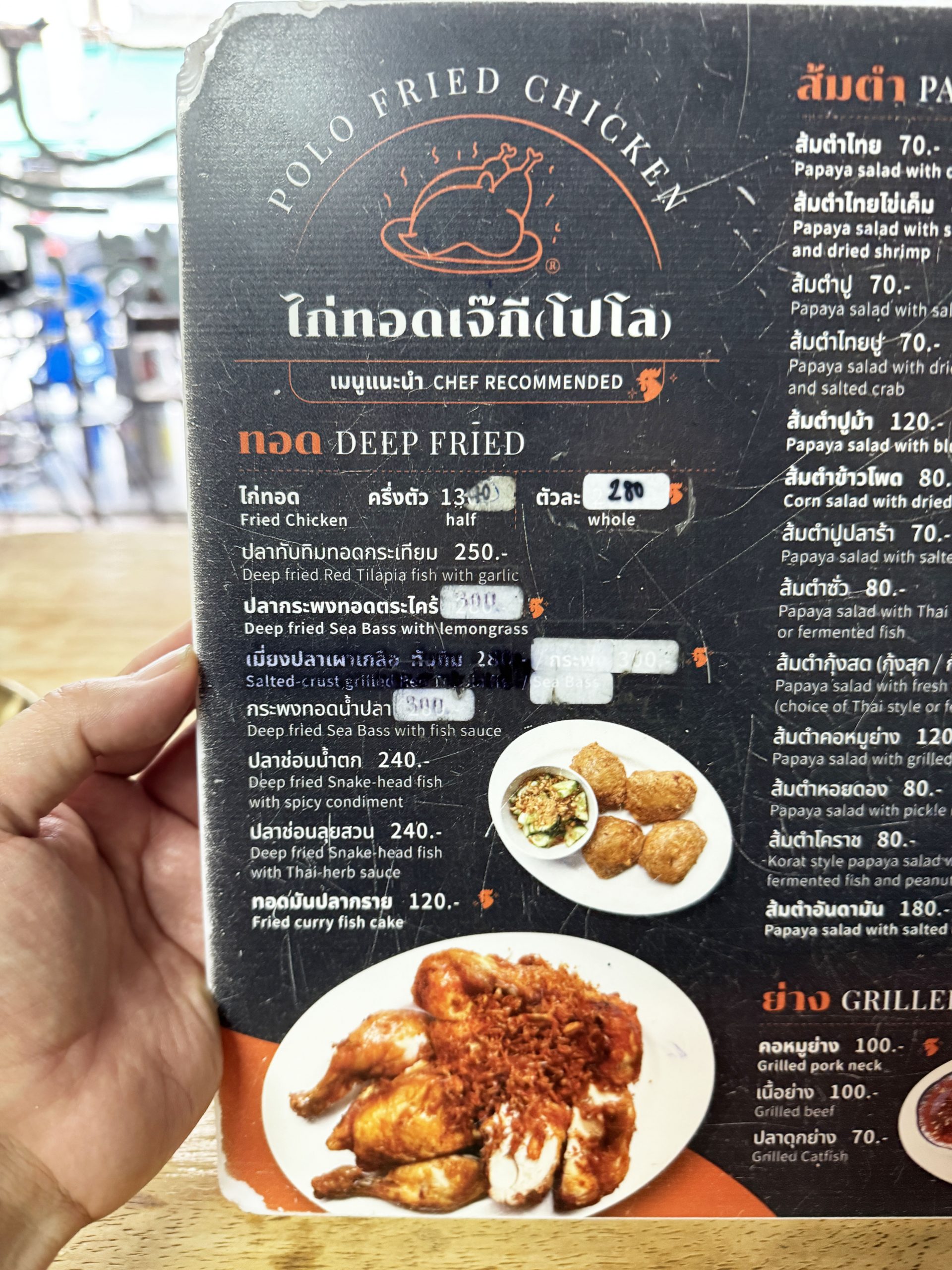 名物料理のフライドチキンはハーフサイズで140バーツ、日本円にして約660円。フルサイズは鶏がガッツリとまるごと登場で280バーツ、日本円で約1320円なので激安だ。