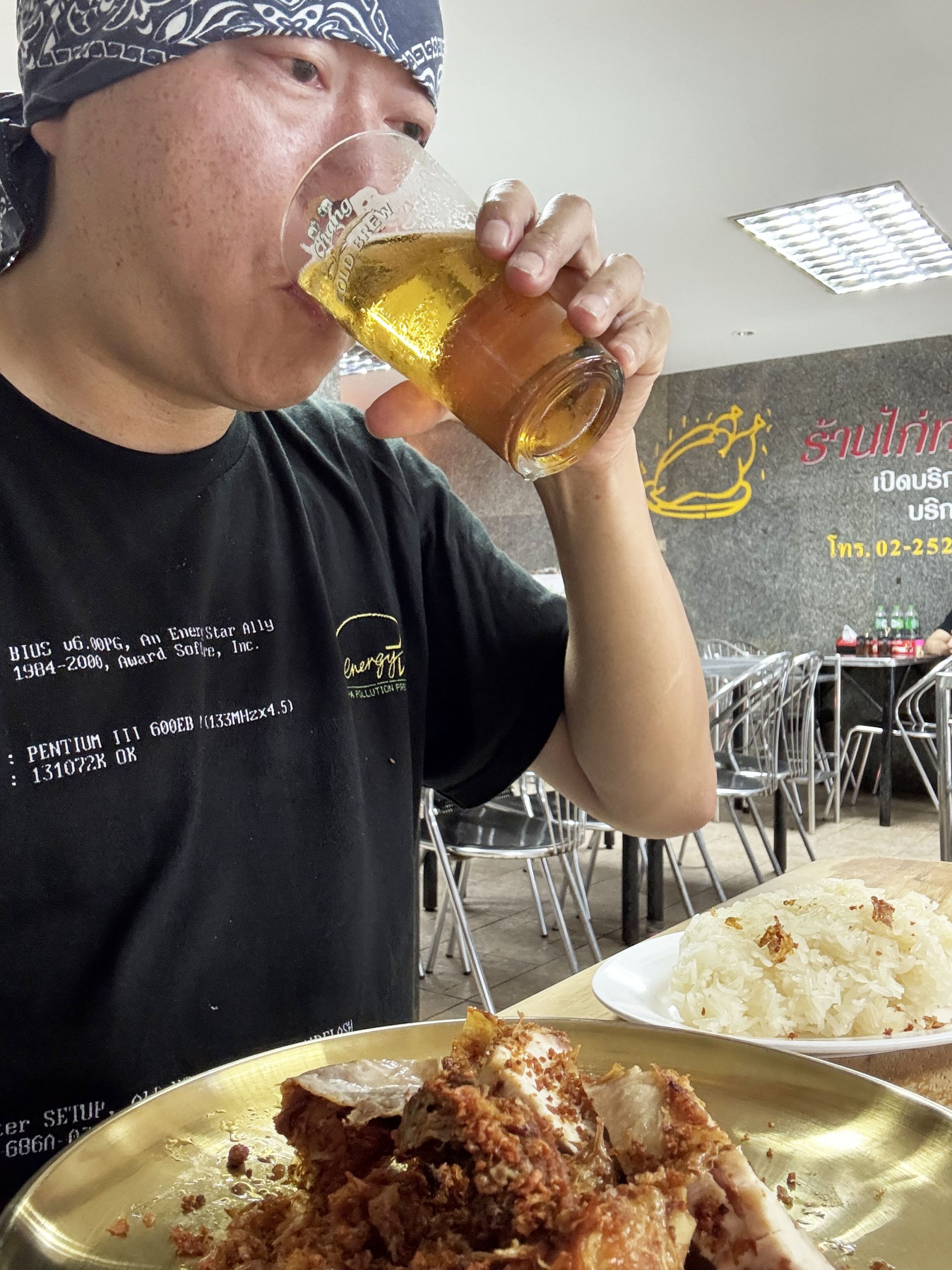 フライドチキンだけを食べる客と、ビールを飲みつつフライドチキンを食べる客、いろいろいるが、筆者は必ずフライドチキンとともにビールとモチ米をオーダーする。その組み合わせ、フライドチキンを楽しむ組み合わせとして間違いないのである。