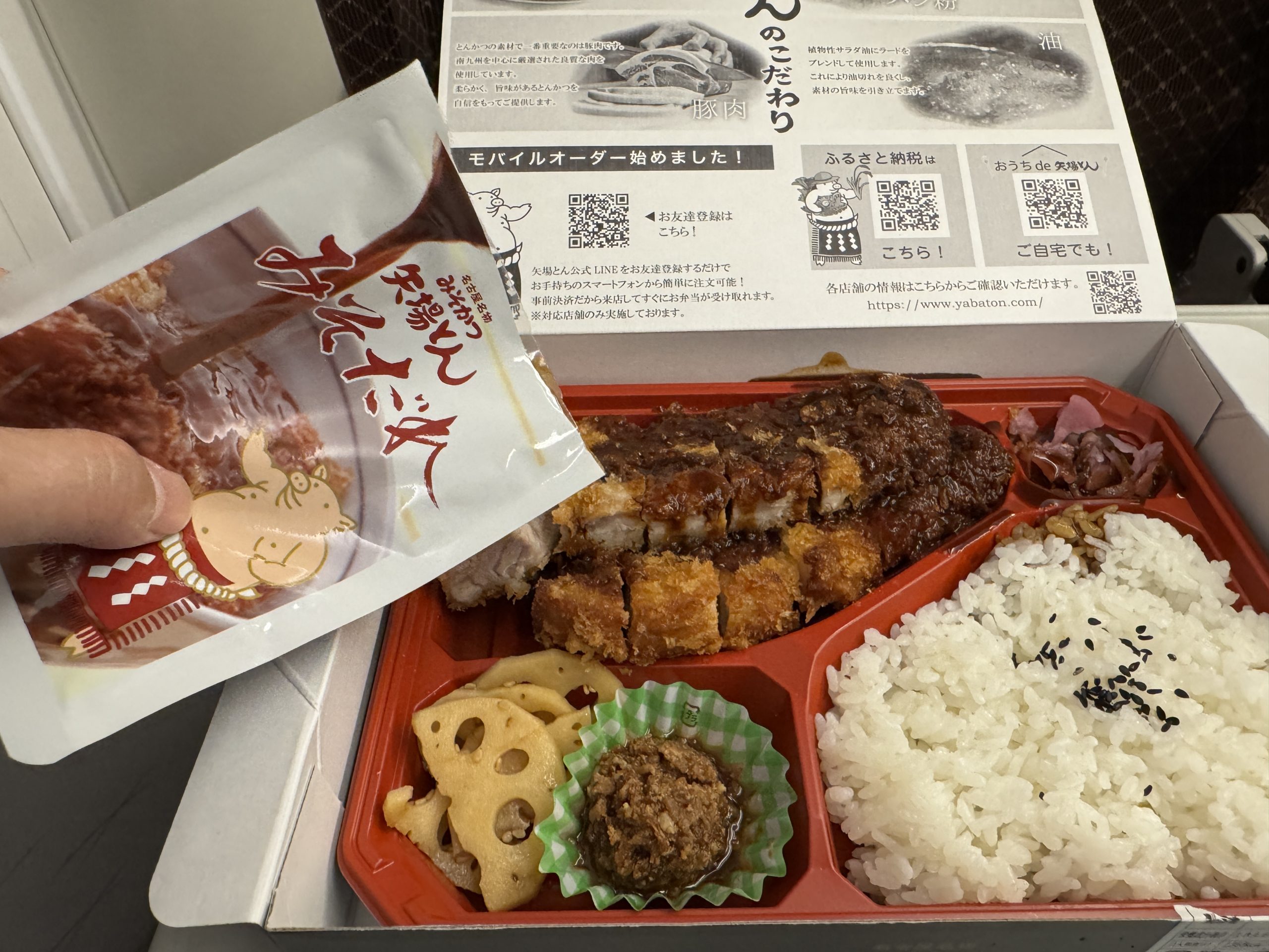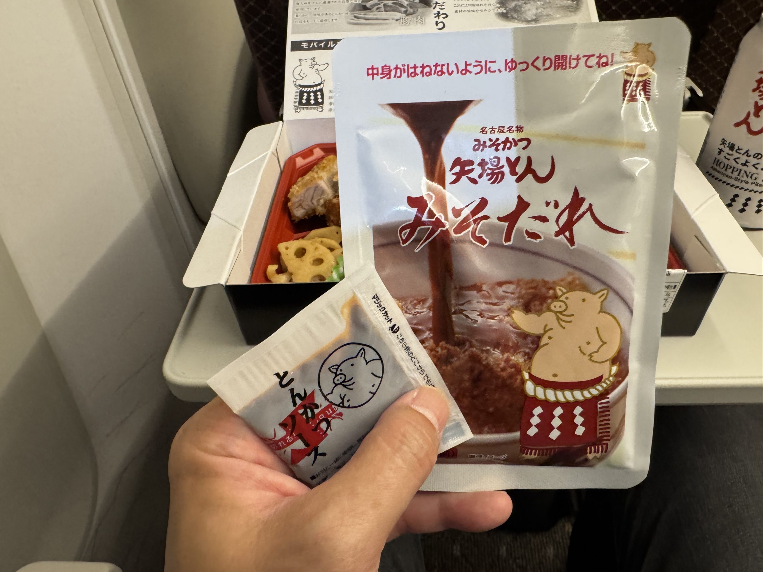 新幹線の中で飲み食いしながら東京に向かう矢場とん