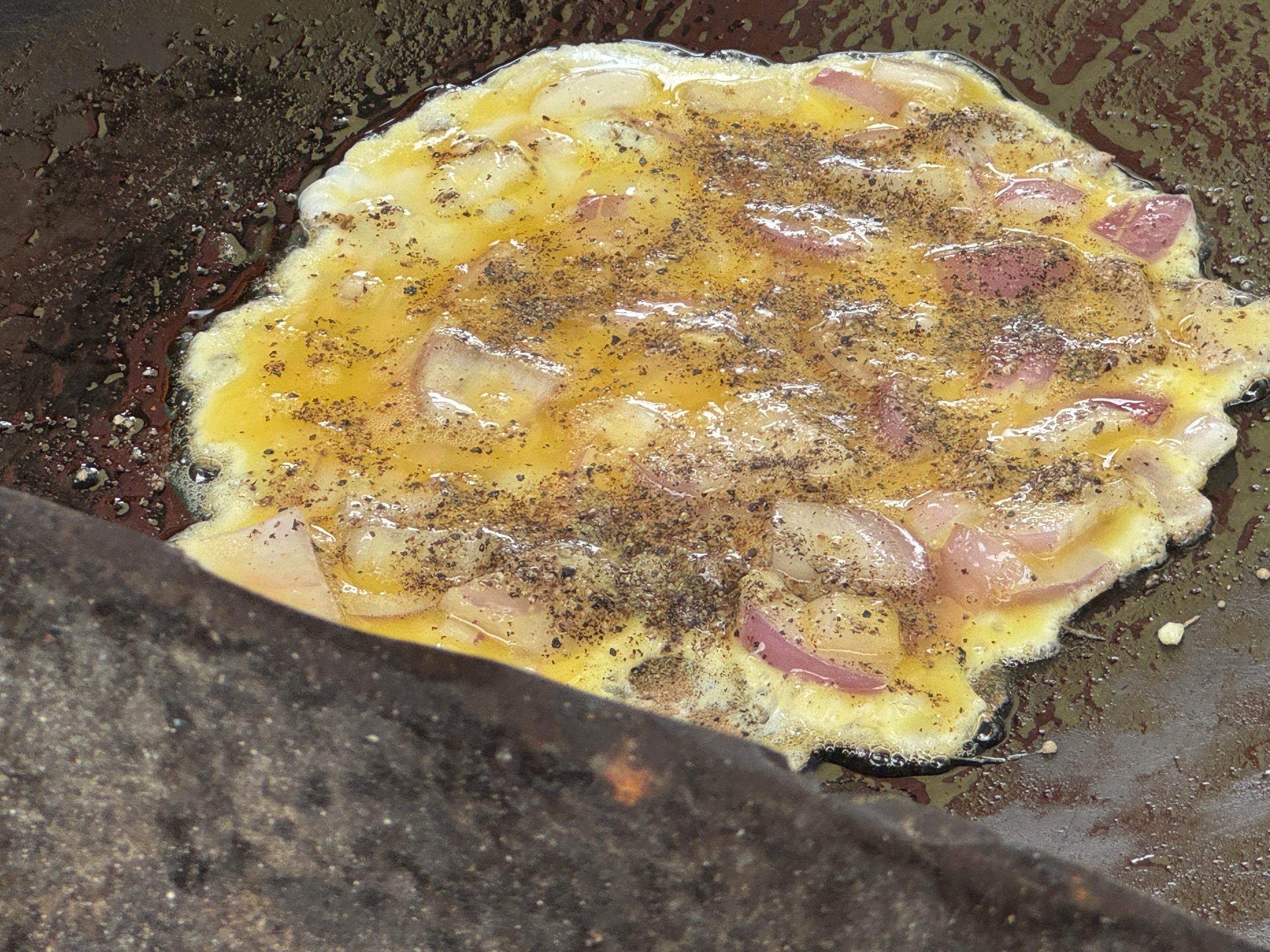 追加料金を支払えばタマネギ入り玉子焼きを食べることもできますよ。もちろん、オーダーを受けてから焼いてくれます。