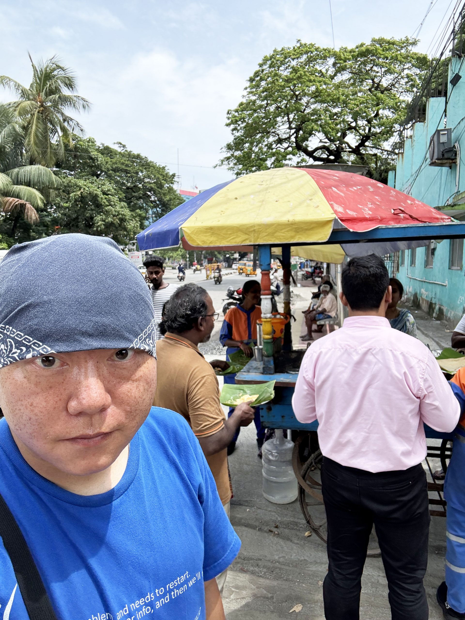 今回はドーサと玉子焼きに、たっぷりとスープとヨーグルト(ダヒ)をかけて食べました。お客さんたちが「お! 外国人が来たな」と思ったようで、めちゃくちゃ親切にしてくれました。スープをどんどん盛ってくれたのです。