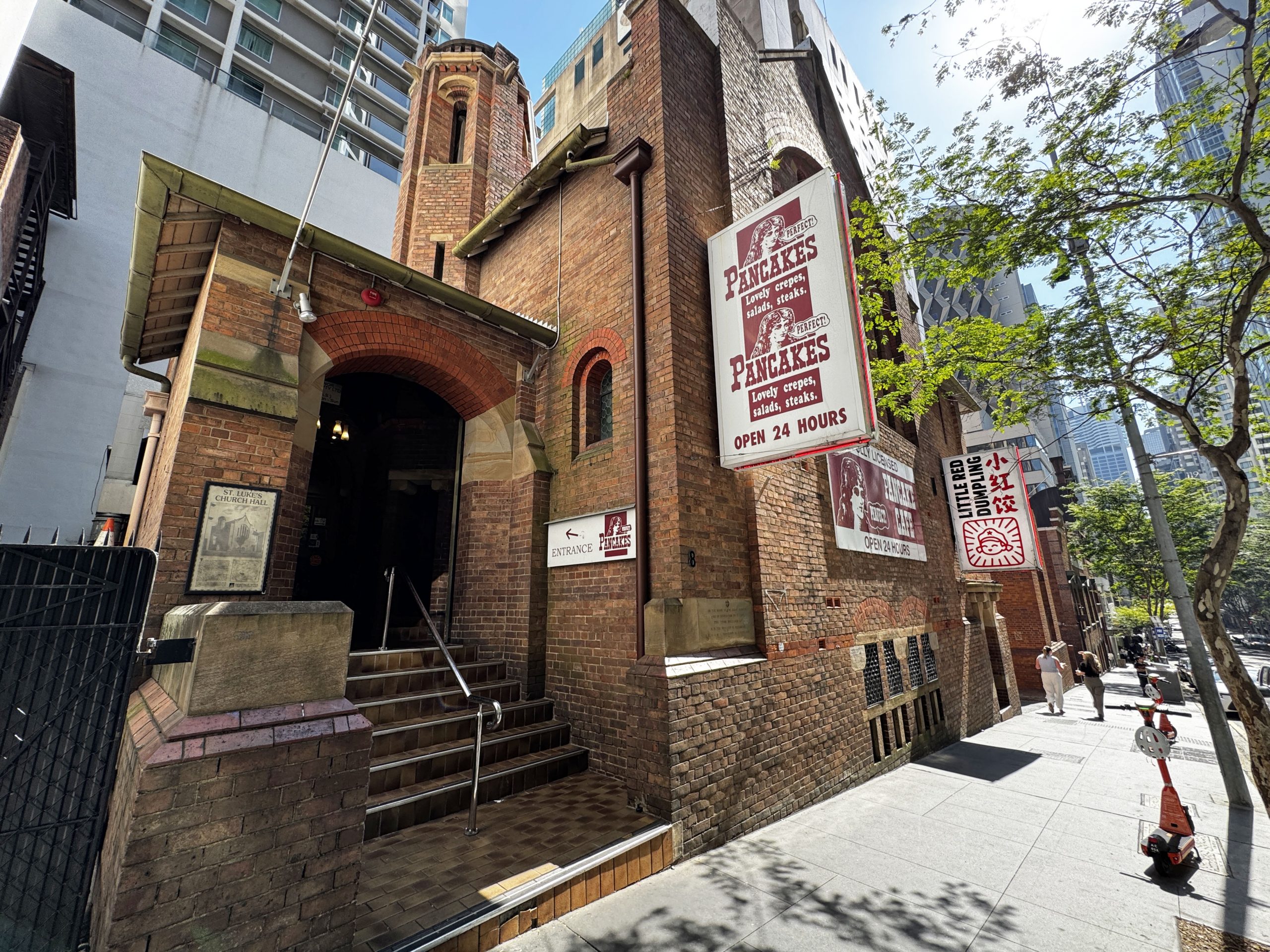 歴史を調べてみると、この教会は聖ルカ教会として1904年に建てられたとのこと。一時的に大聖堂として使われたこともあるそうです。そんな歴史ある教会がパンケーキ屋になったのは1979年のこと。それ以来、パンケーキマナーはブリスベンの代表的なパンケーキ屋として愛されているようです。