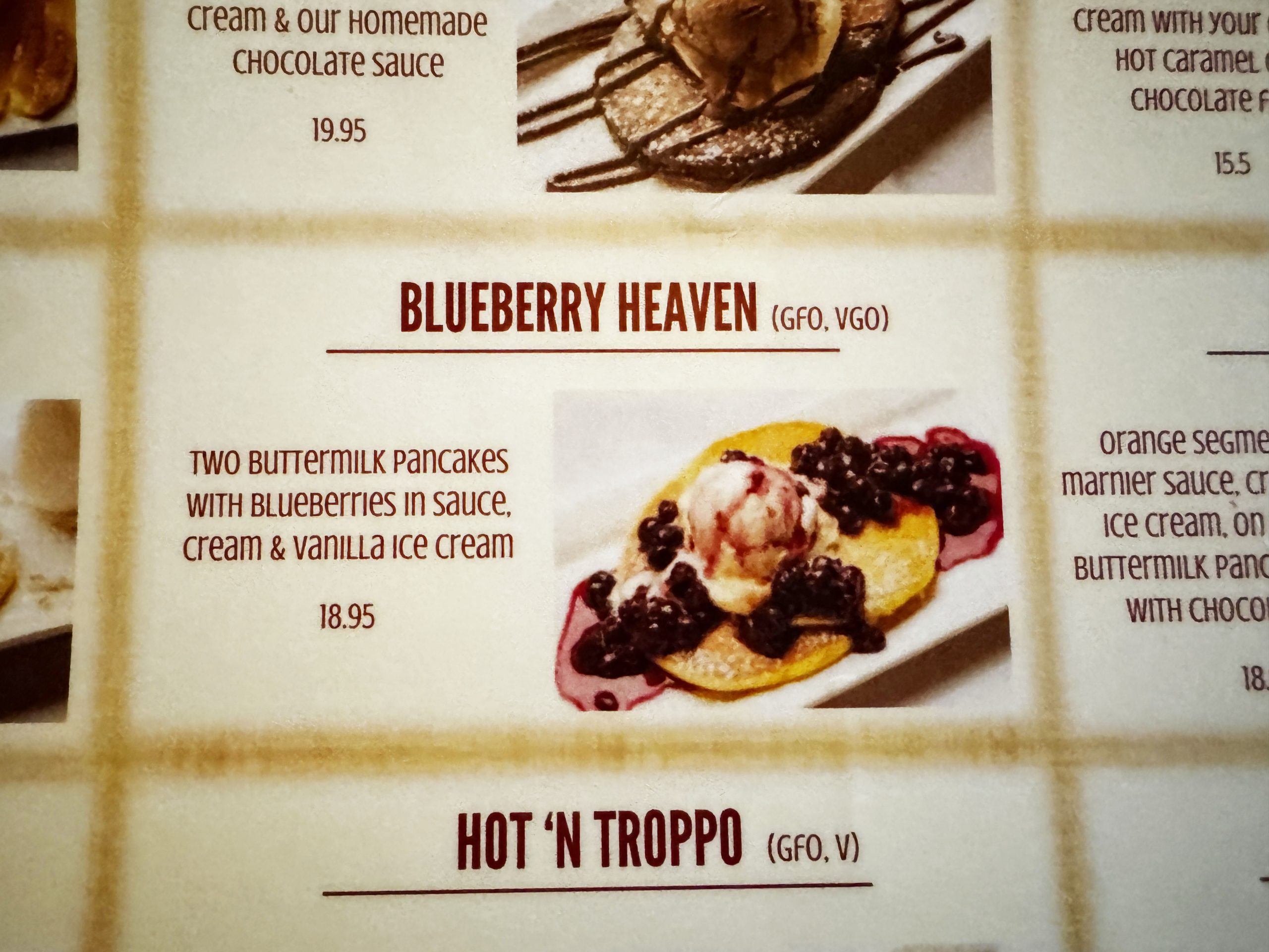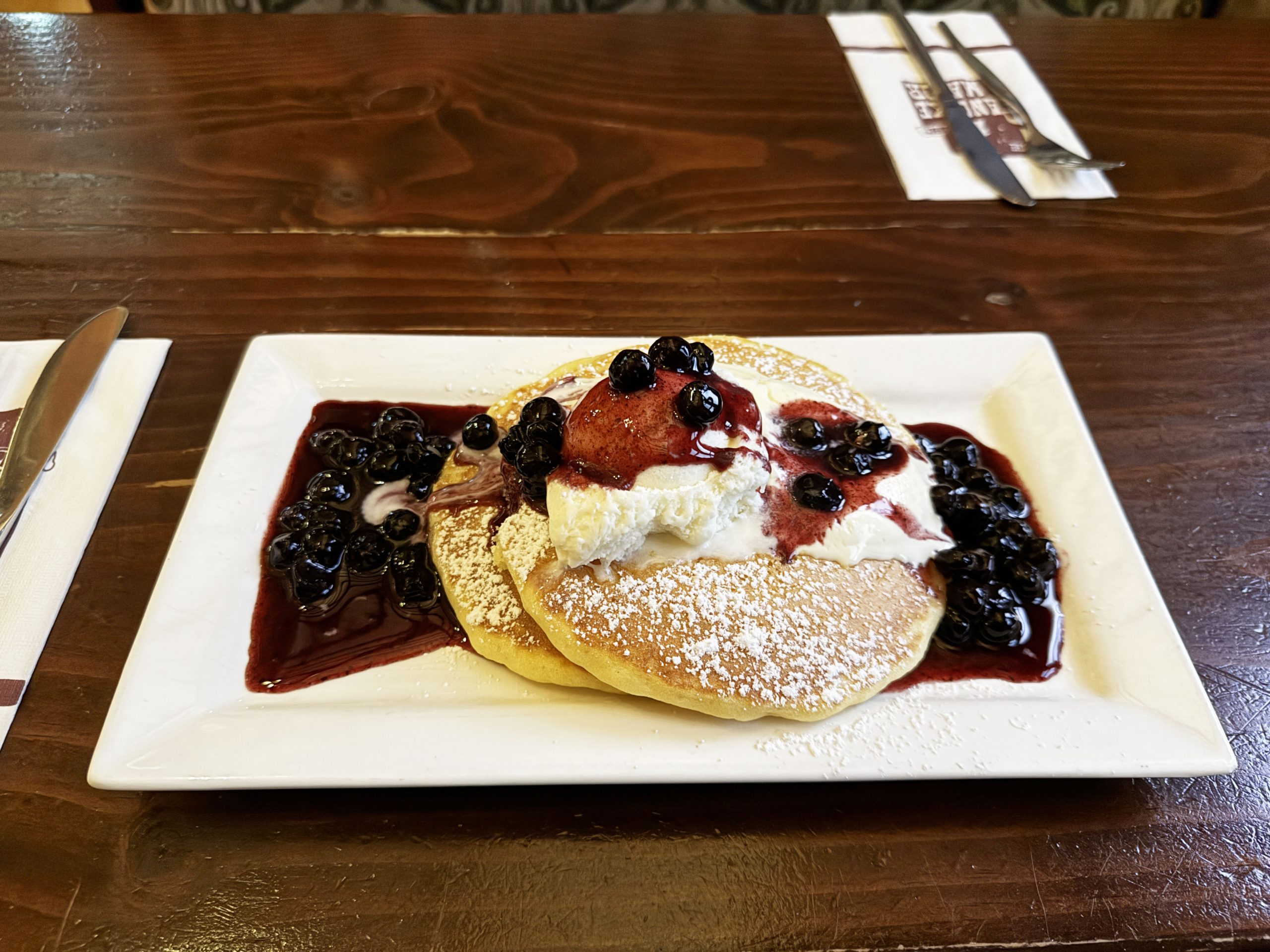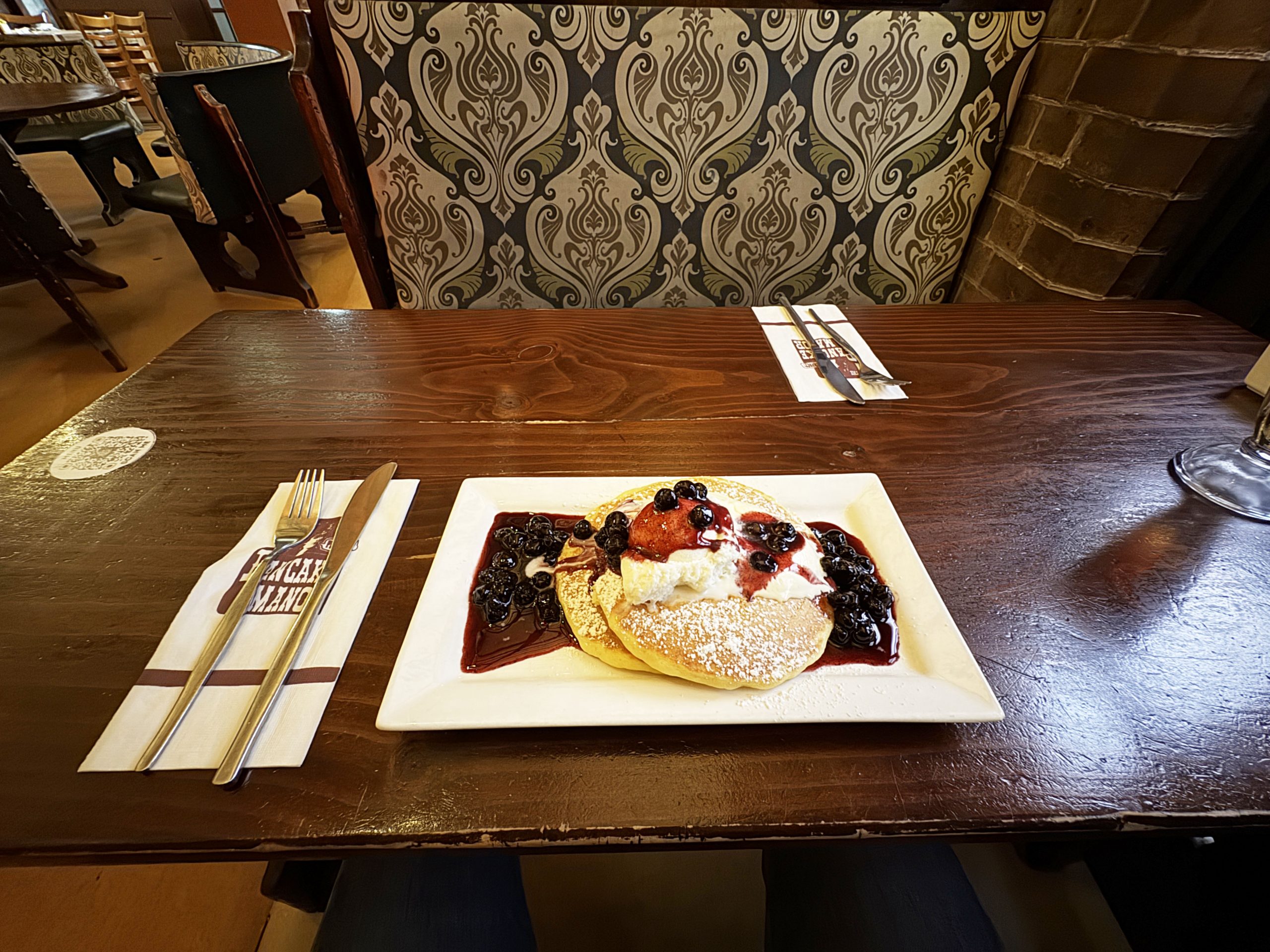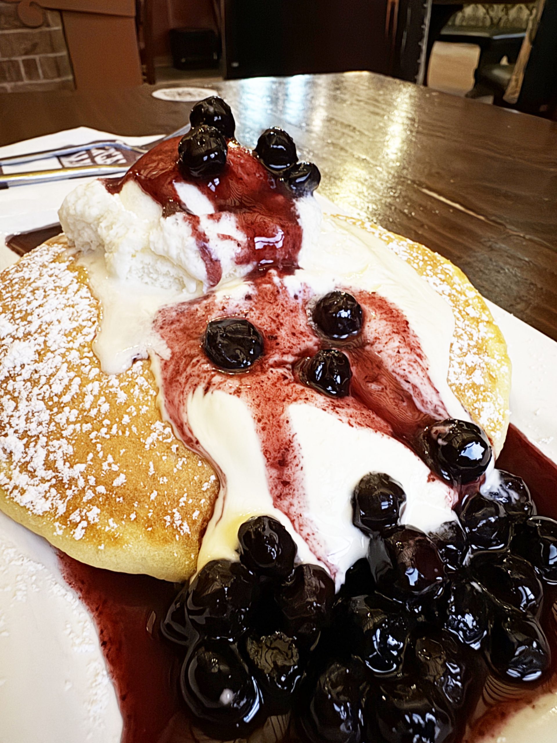 名物はバナナパンケーキのようですが、情報によるとブルーベリーパンケーキも良いらしい……。ということで、今回はブルーベリーパンケーキをオーダー。
