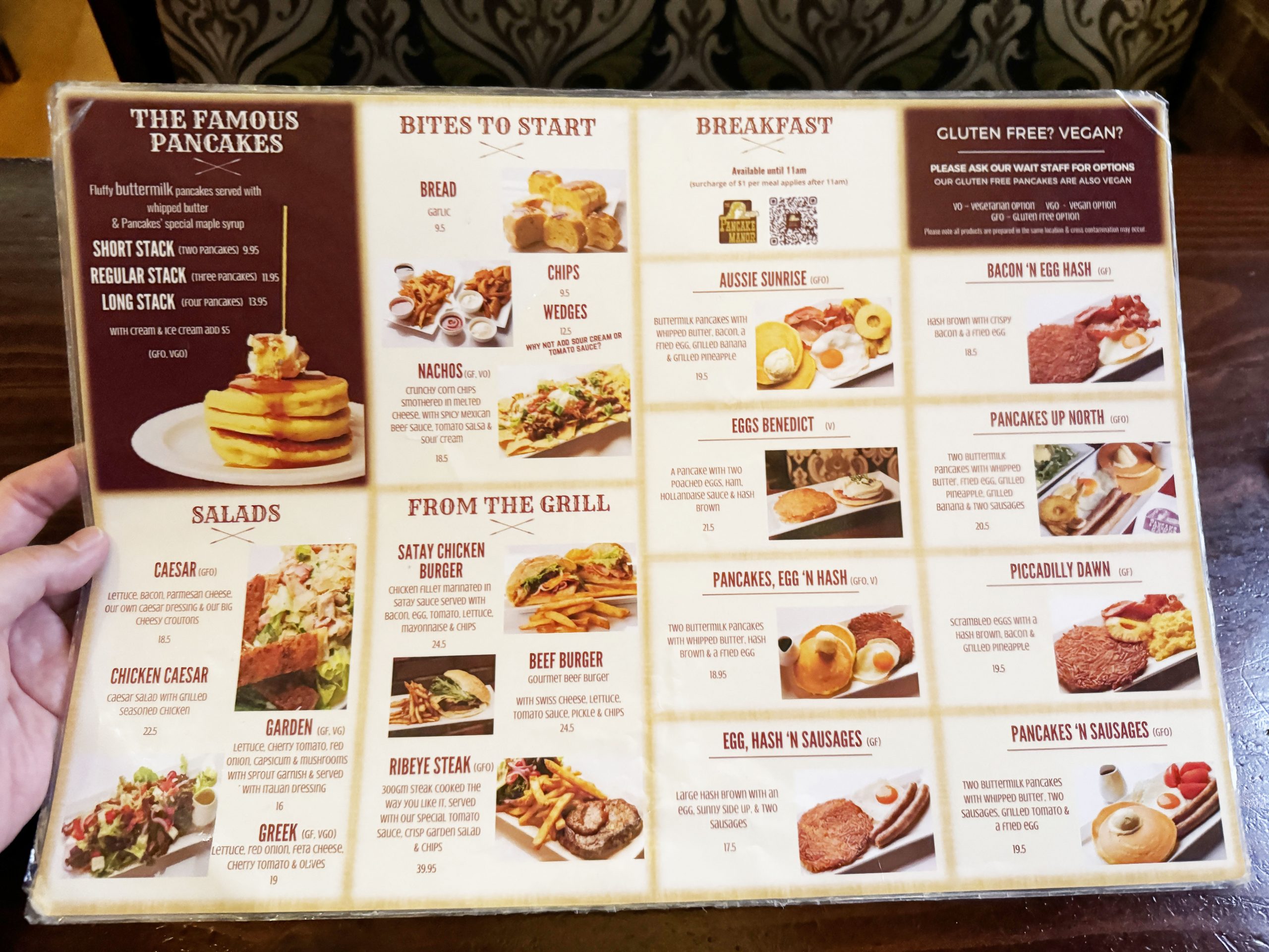 パンケーキマナーの店舗は、ブリスベンの中心部にあります。鉄道のローマストリート駅からも徒歩圏内です。近くにはスターバックスコーヒーやハングリージャックス(バーガーキング)、マクドナルドなどもあり、印象としては、日本でいうところの銀座、上野、横浜のような場所といえます。