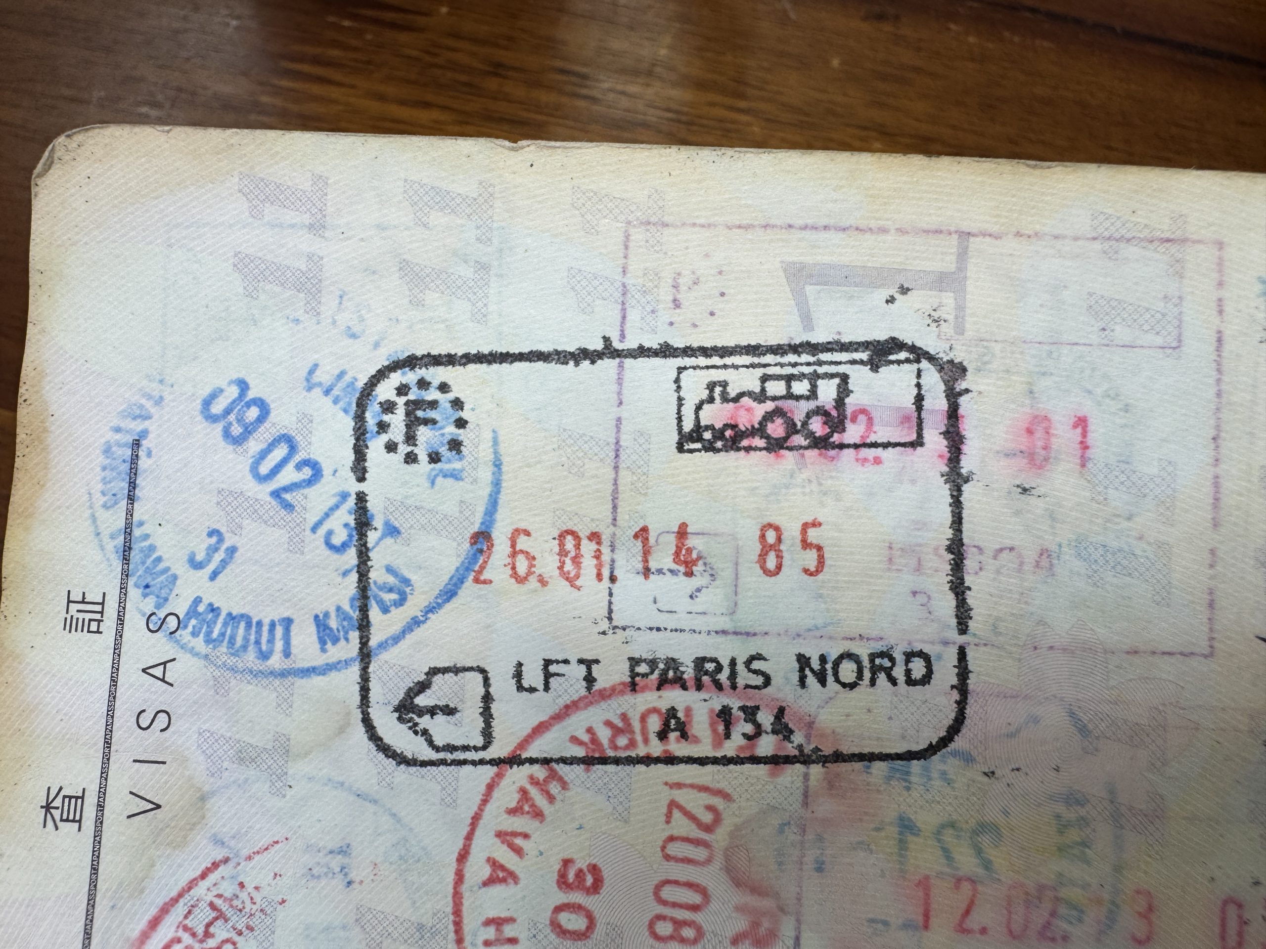 ヨーロッパ(シェンゲン圏)の出入国スタンプは基本的に同一デザインなのですが、出入国手段が飛行機か鉄道かによりスタンプの「乗り物表示部分のデザイン」が変わります。