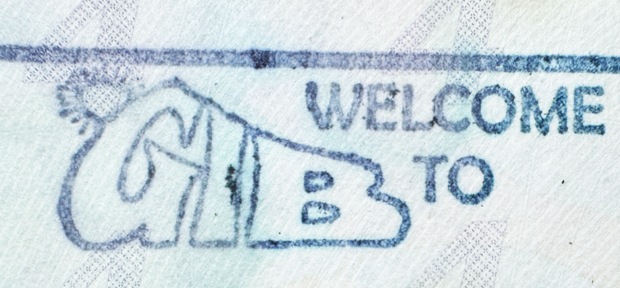スペインの先っぽにあるイギリス領のジブラルタルのスタンプには「WELCOME TO GIB」と書かれているのですが、「GIB」の部分が強調されて描かれています。デジタル的な線に見えないので、手描きでデザインしたと思われます。画材はサインペン的なものかも? よく見ると、太陽が昇っています。超歓迎されている感があってエモいです。