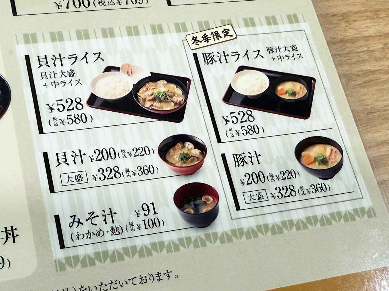 「貝汁」は丼メニューエリアの端にありました。これまでなかなか丼メニューを食べようという発想にならなかったので、完全にノーチェックだった! これだったらうどんにつけるのもアリだったなあ……。