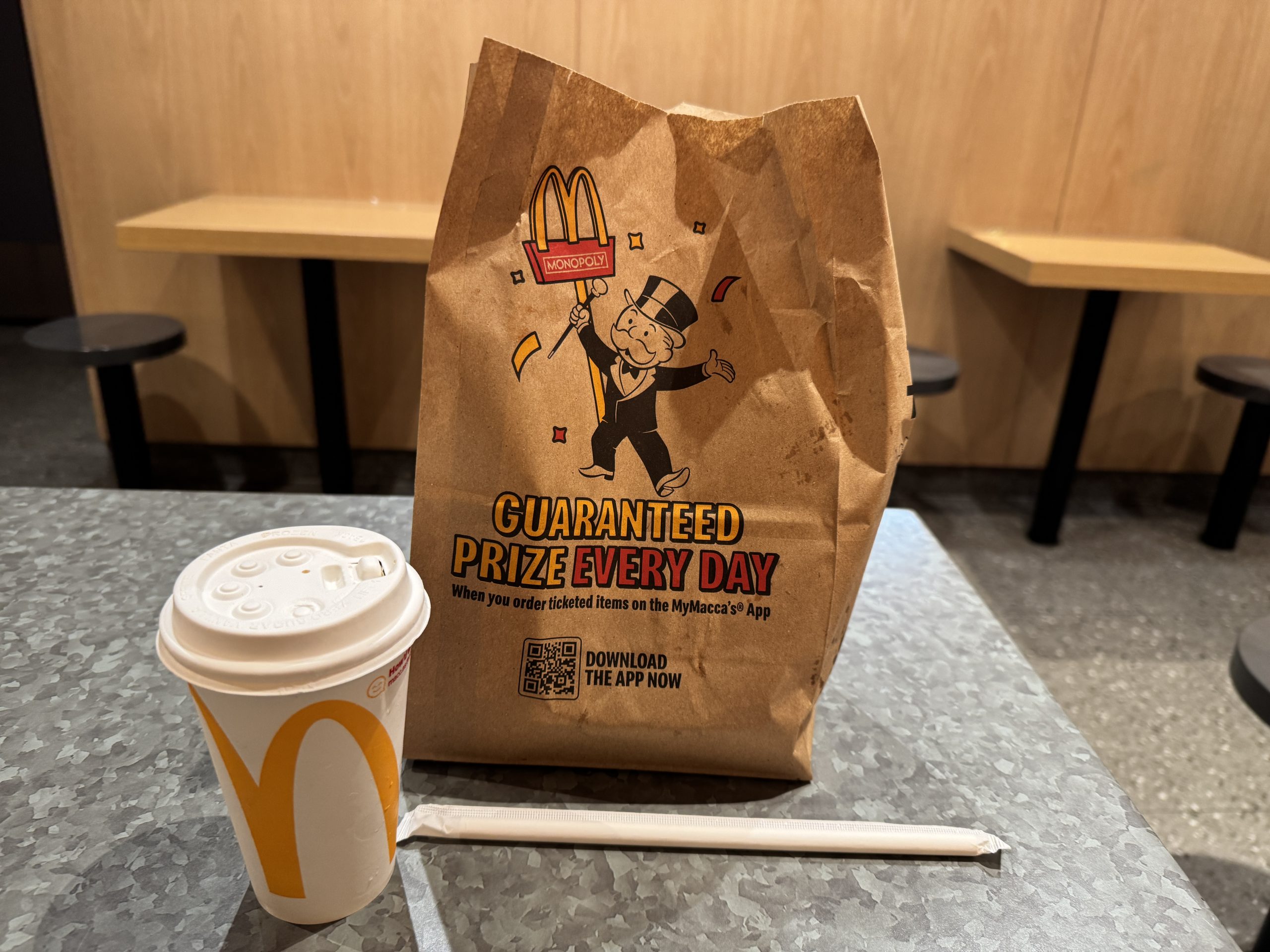 さっそくオーダー。ビッグアーチとマックフライポテトSとコカ・コーラゼロSのセットを購入し、価格は17.50AUD(約1750円)でした。