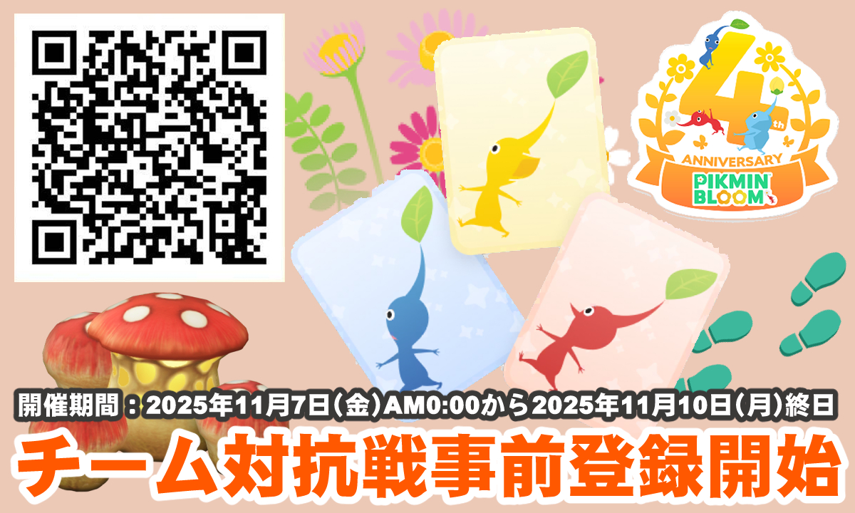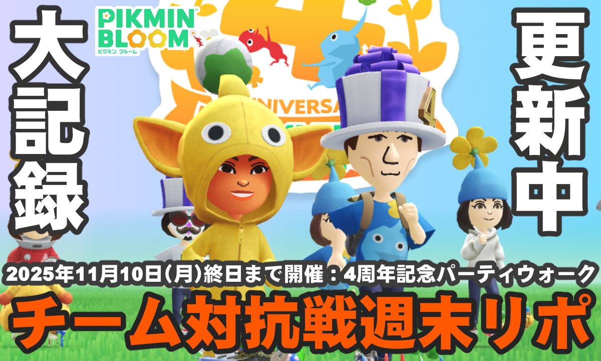 2025年11月7日(金)より位置情報ゲーム『ピクミン ブルーム』4周年を記念した公式主催のパーティウォークがスタート。