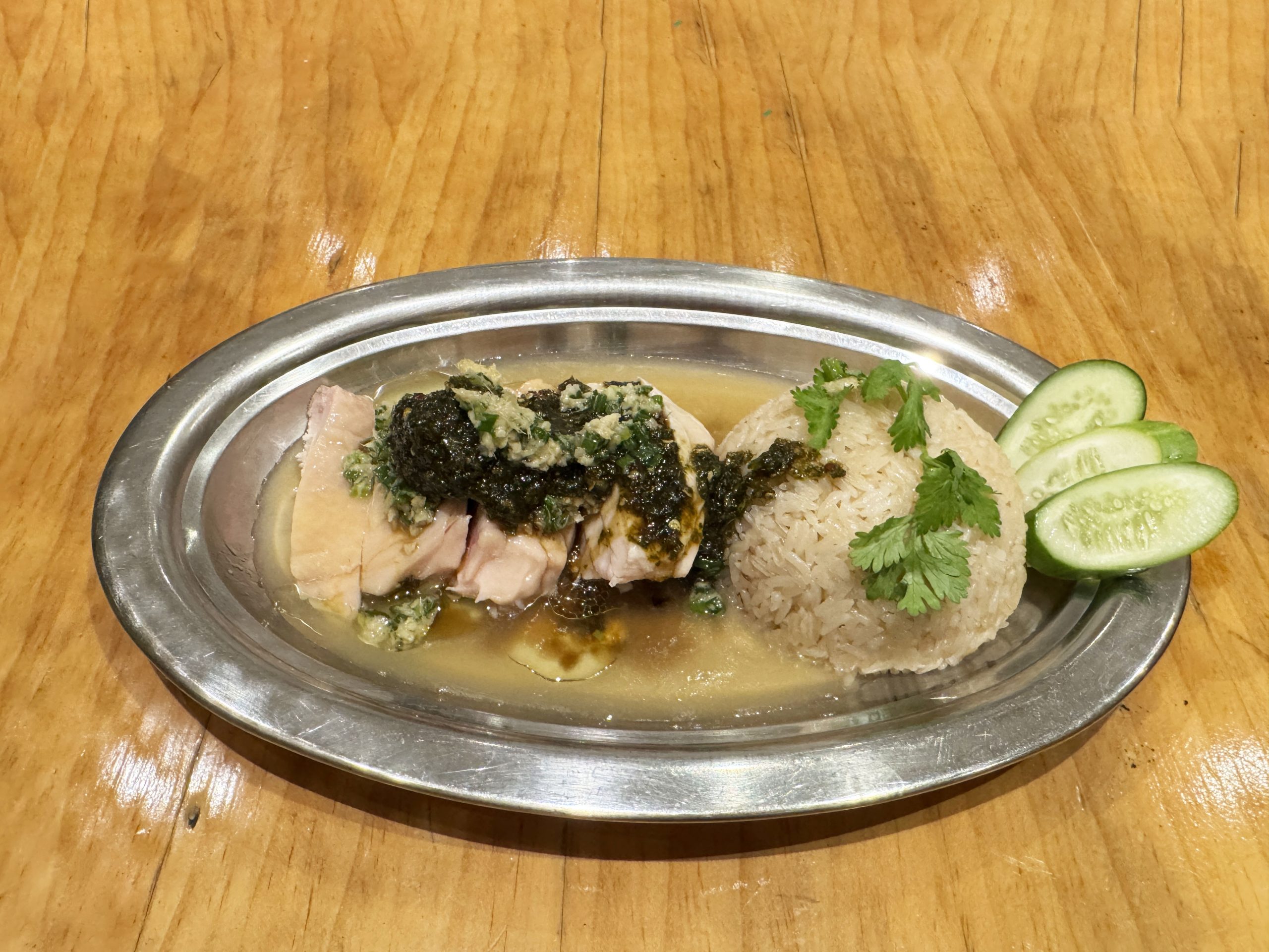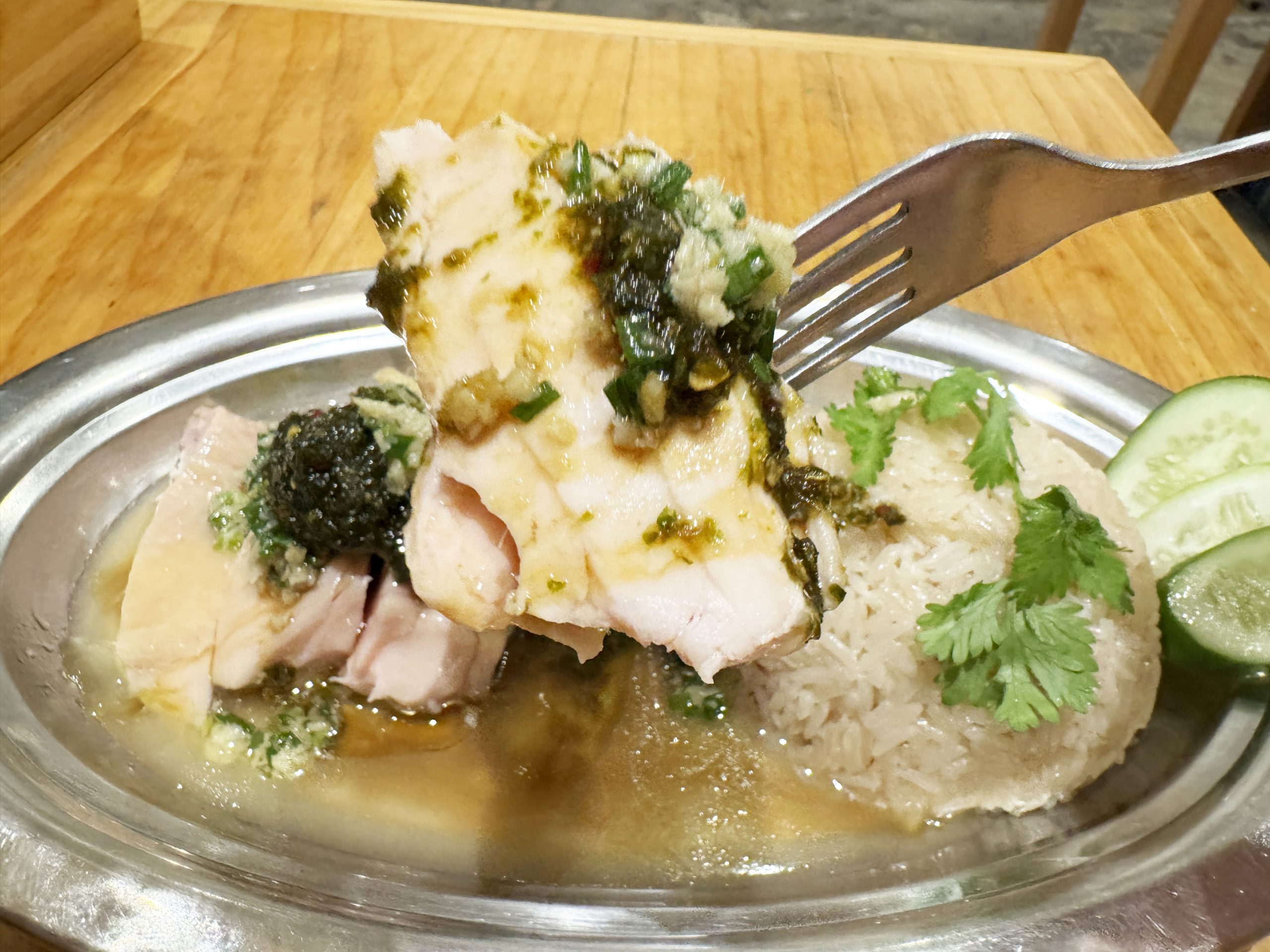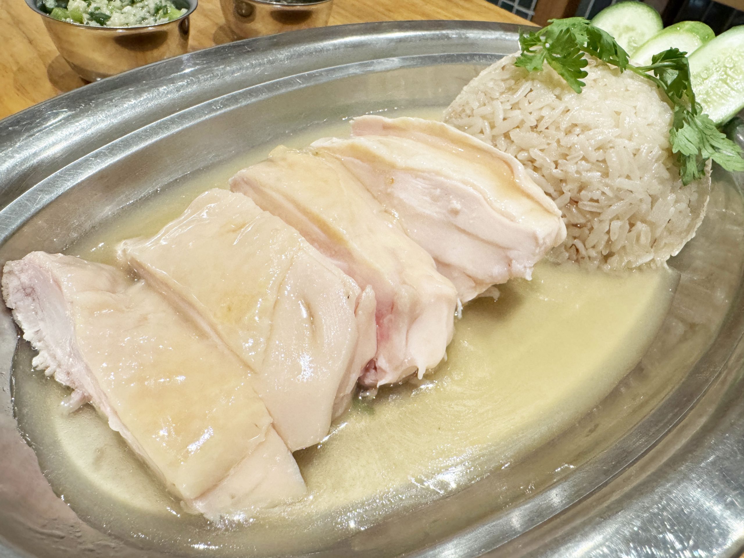 スープをかけて食べるというポイントだけに注目が集まりそうですが、そもそも、カオマンガイの鶏肉としてかなりハイレベルです。贅沢にカットされた旨味が濃い鶏肉を使用しているので、その時点でハイレベル。
