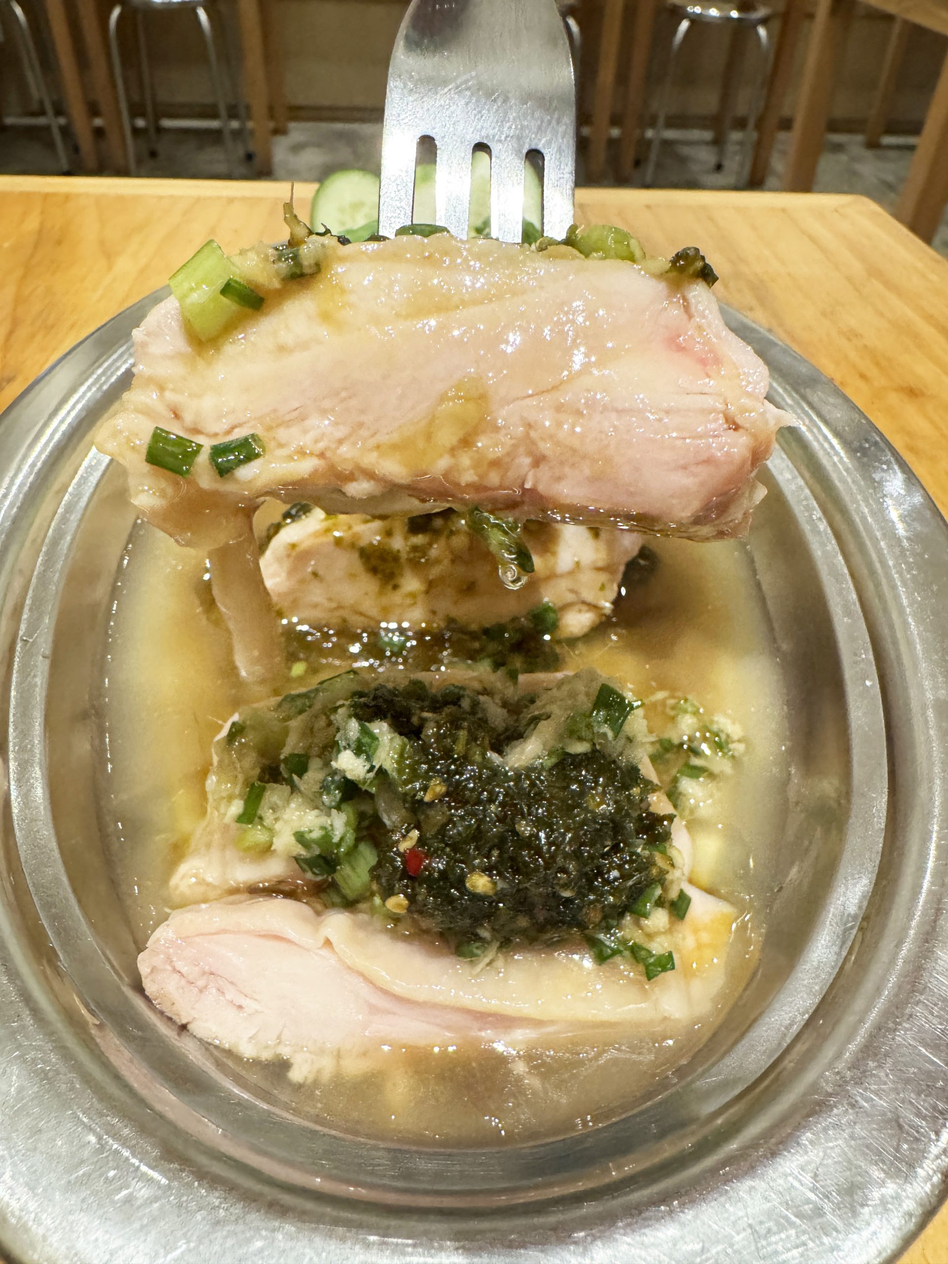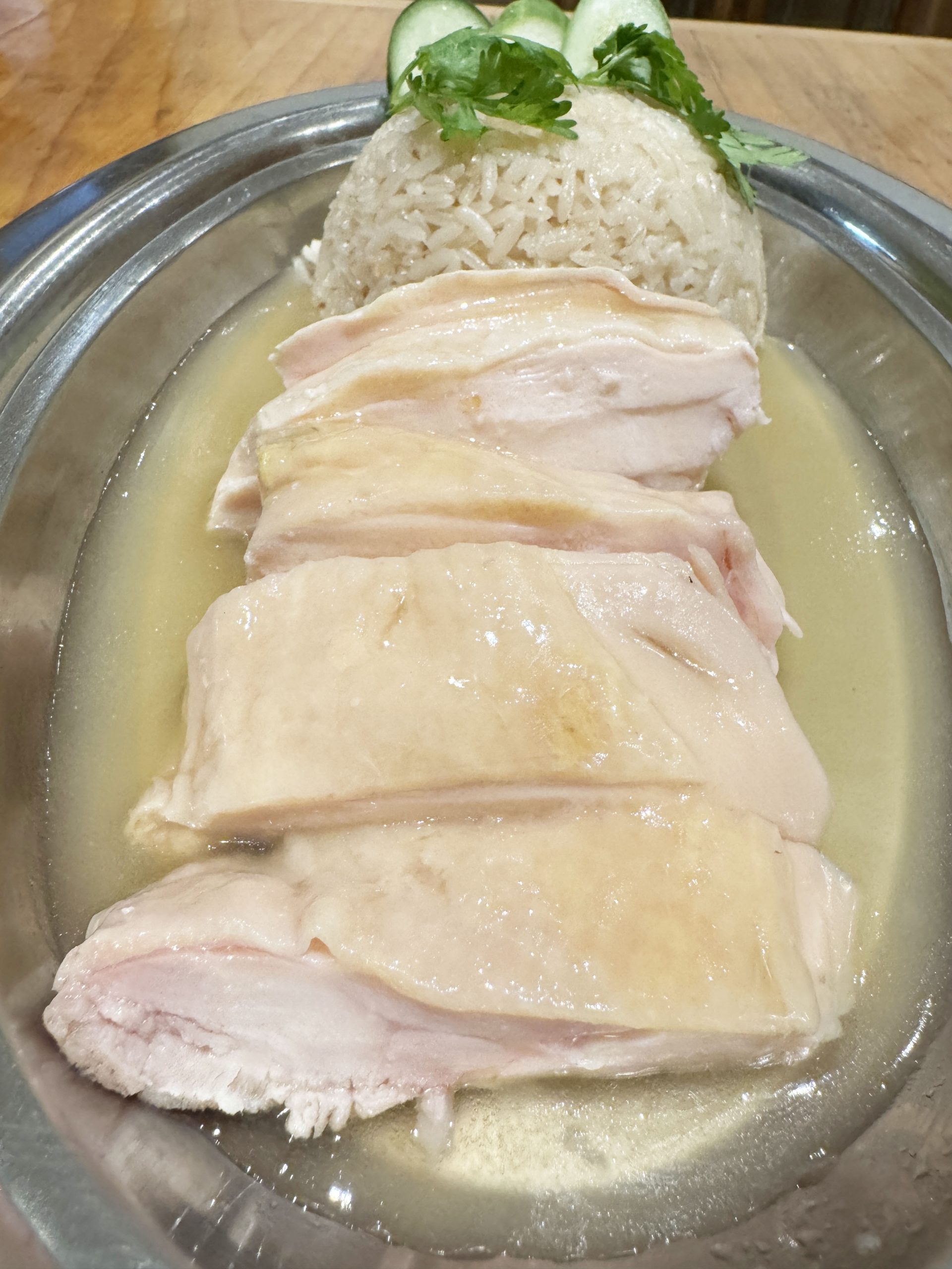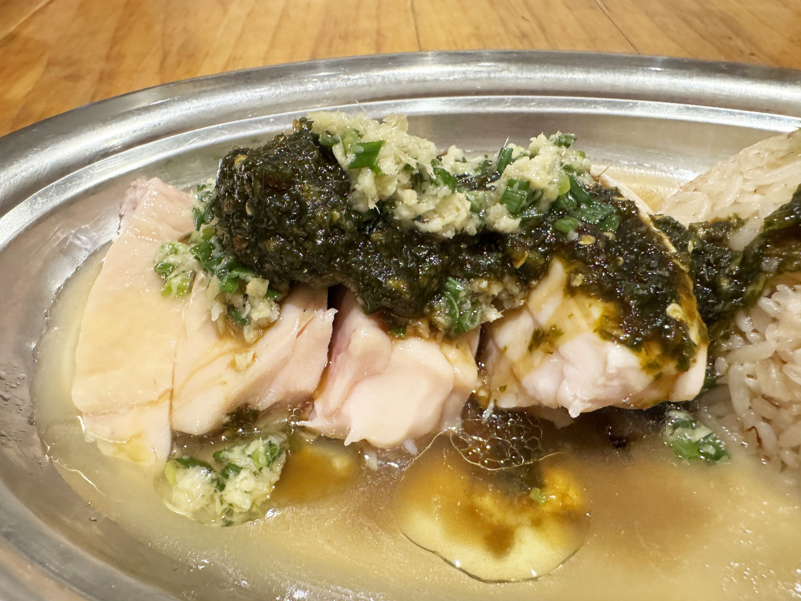 スープをかけて食べるというポイントだけに注目が集まりそうですが、そもそも、カオマンガイの鶏肉としてかなりハイレベルです。贅沢にカットされた旨味が濃い鶏肉を使用しているので、その時点でハイレベル。