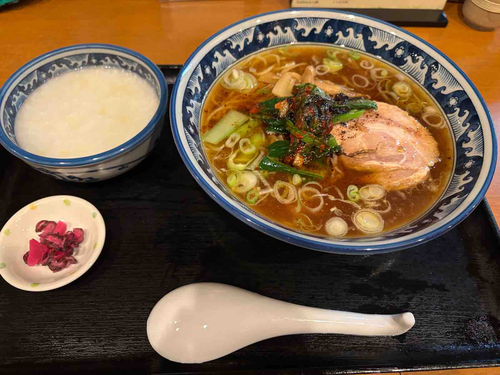 そしてホタテの貝柱とコトコト煮込んだ中華粥も超絶品。ラーメンのスープとの相性も抜群。地元客がおつまみで一杯やりながらラーメンで締めていて羨ましい。近所に欲しい名店。