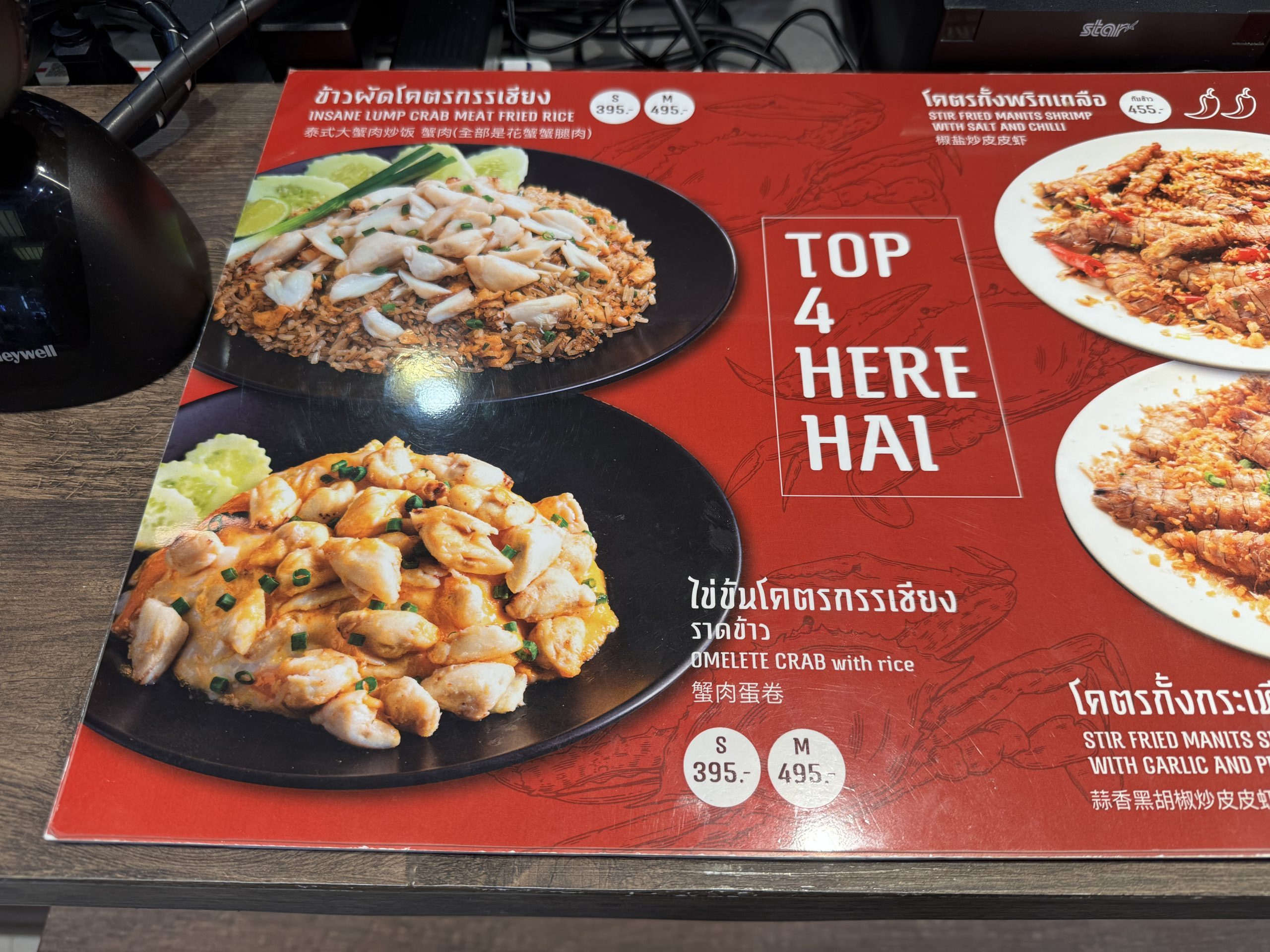 価格はSサイズが395バーツ(約1900円)、Mサイズが495バーツ(約2350円)です。大ボリュームというわけではなく、そう考えると、なかなか強気の価格設定な気がします。しかし食材が蟹ですからね。妥当な価格かも!?