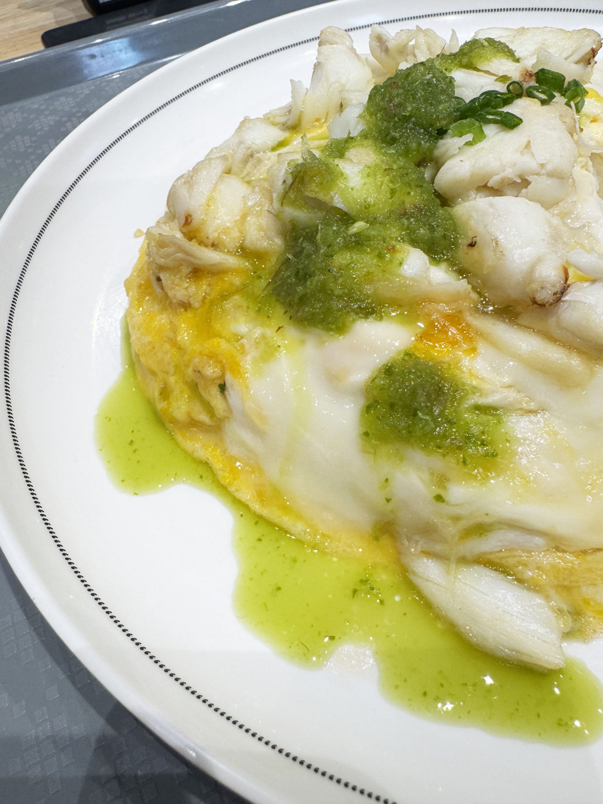 ライスはプレーンなテイストで、玉子のたんぱくなテイストが、蟹とライスを仲介してくれている感があります。そうか、玉子が蟹のパワフルな蟹感を受け止めてくれるから、ライスと蟹の相性がより高まっているのかな。