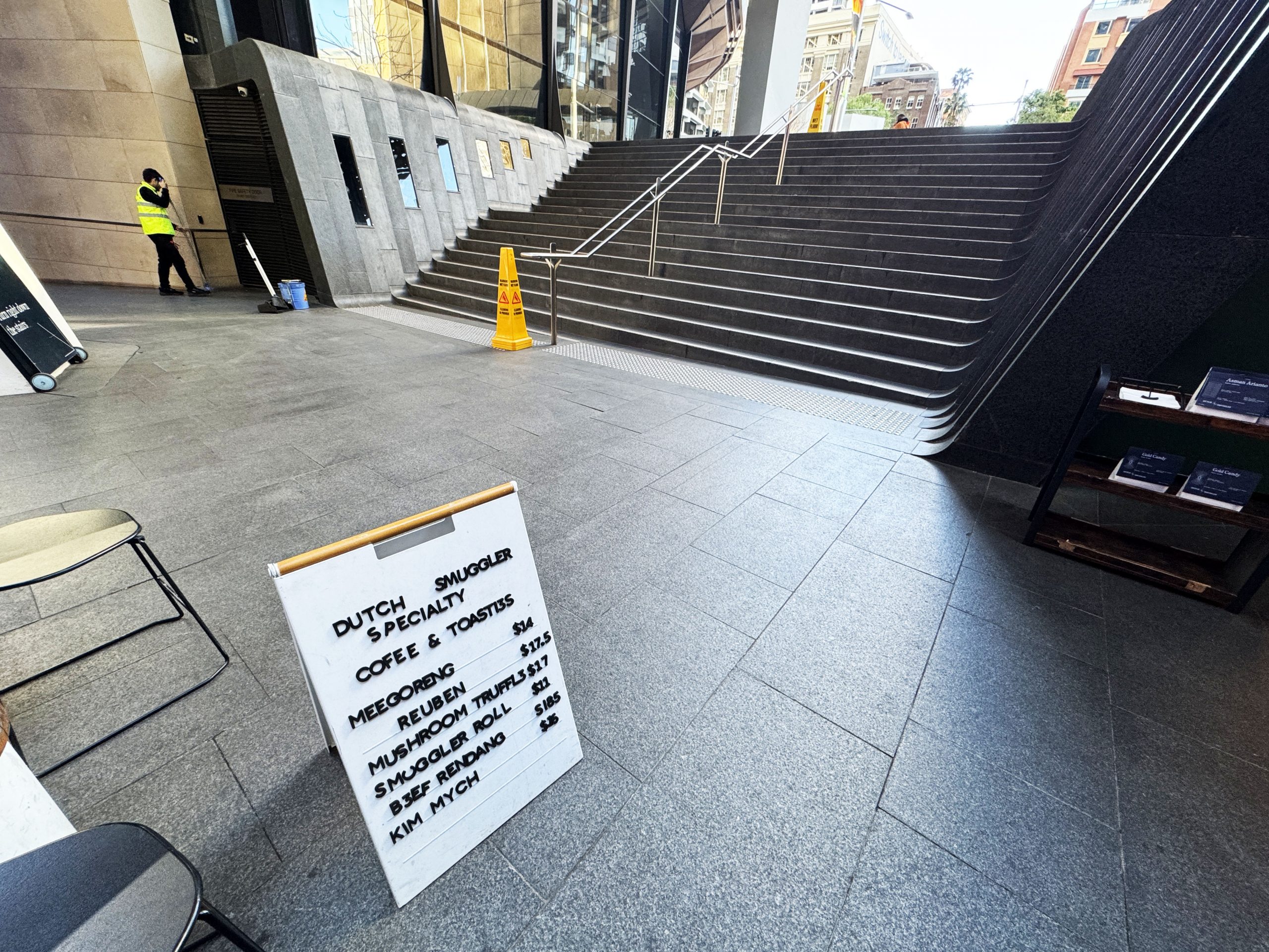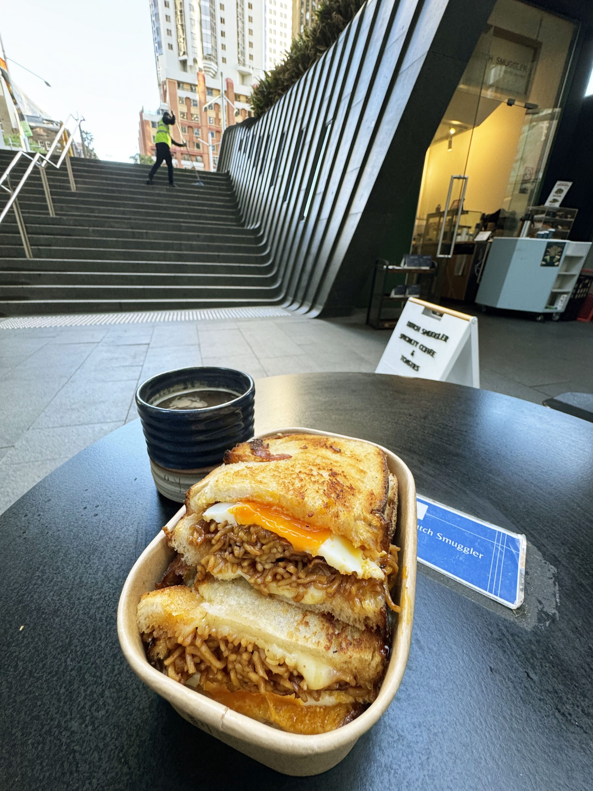 もともと早朝からオープンしているカフェとして愛されている「Dutch Smuggler Coffee Brewers」(200 George St, Sydney NSW)。ここでは朝からボリューミーなトーストを販売していて、実物はトーストというより巨大サンドイッチ。