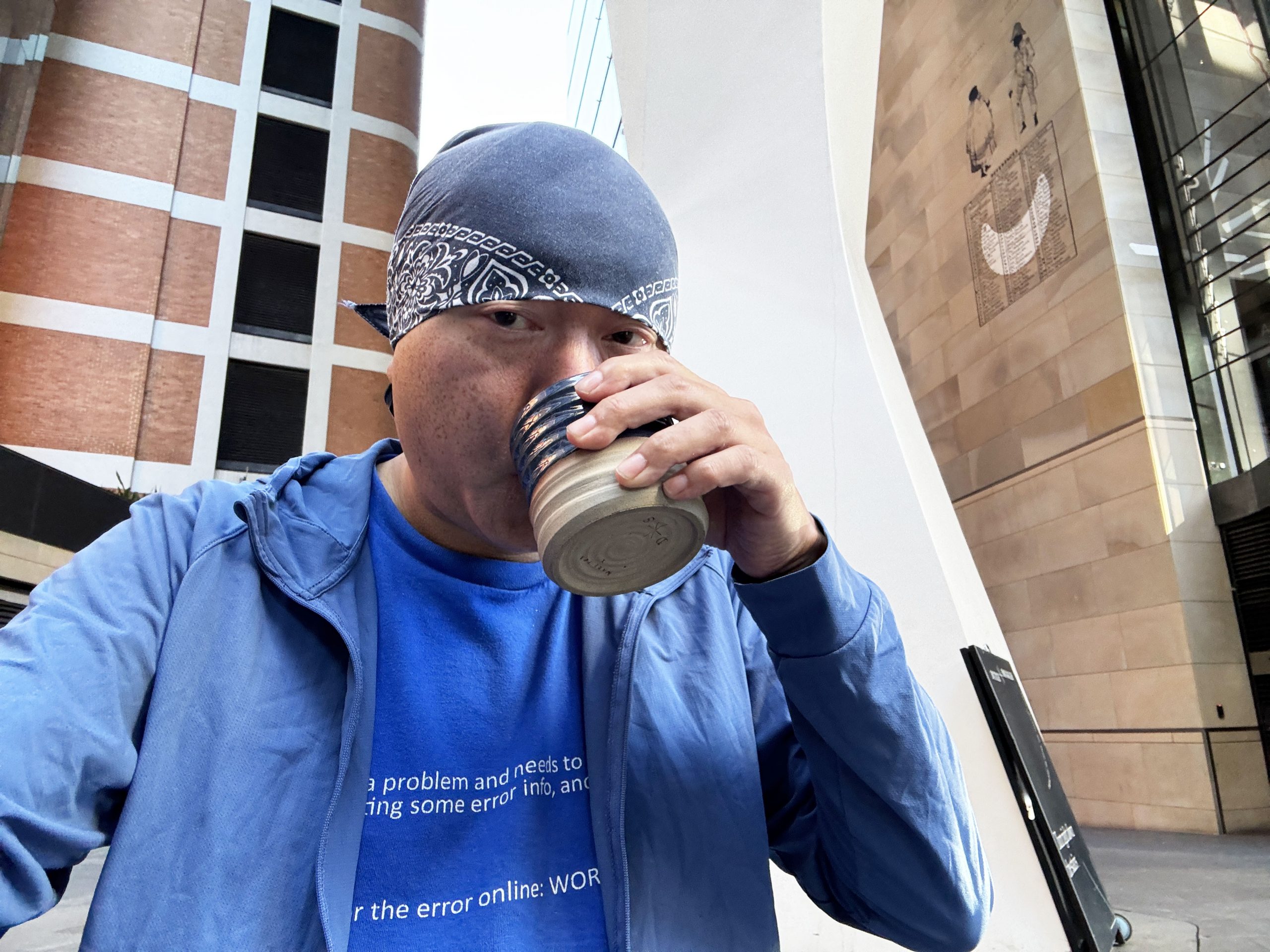 季節は冬。テラス席なので、早朝のキンと張りつめた空気の中で食べるミーゴレンサンドイッチは最高でした。ごちそうさまでした!